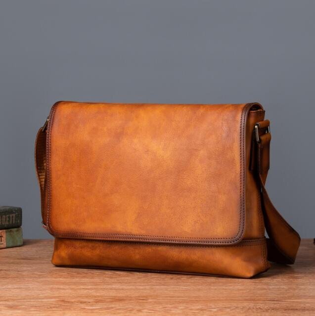 職人手作りヌメ革 メンズショルダーバッ グ メッセンジャーバック 斜めがけ 肩掛け レザー ビジネスバッグ おしゃれ