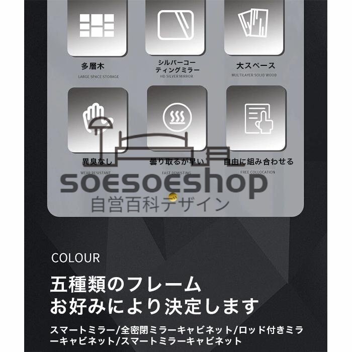 ★多機能ミラーキャビネット:LED鏡、 曇り止め、収納、時間表示