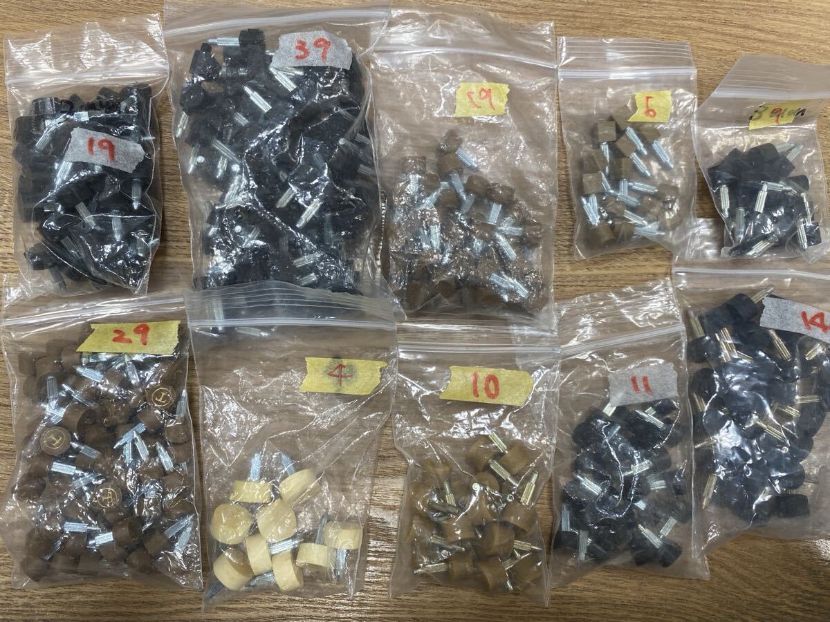 下段左から2番目の変色しているピンがサイズ直径約13mm、その他のピンはそれ以下の小さいサイズです。