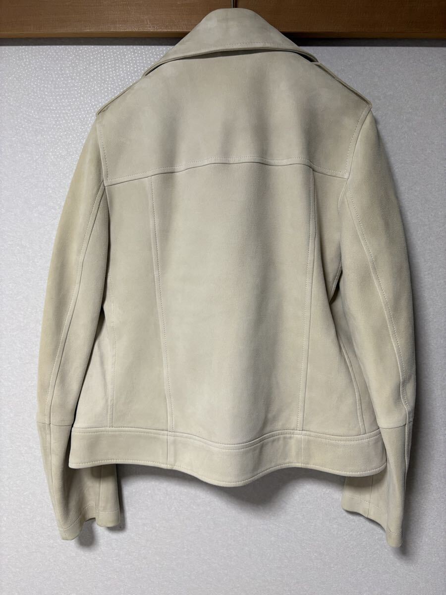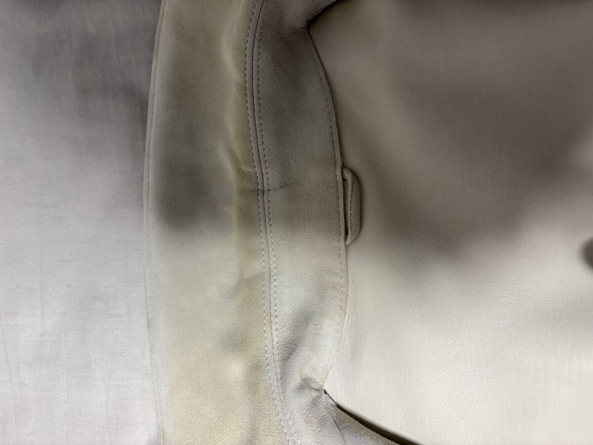 両袖、襟に多少汚れがございますが、近づかないとわからない程度となりますので、ご着用に大きく影響するものではないかと思います。全体的には、大きく目立つ汚れのない、綺麗な状態。ただし素人保管のため完璧をお求めの方はお控えください。