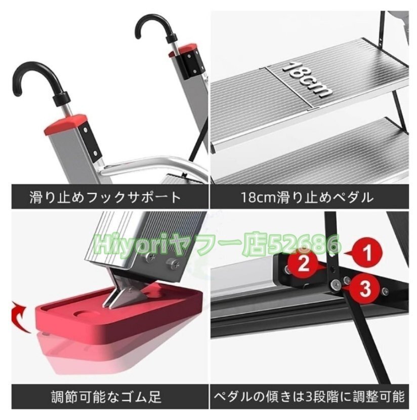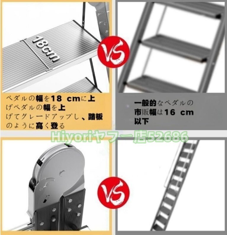 【揺れ防止、滑り防止】:脚先は滑り止め設計を採用し、ずれたり滑ったりしにくいゴム素材のカバー付きです。各踏み板面は凸凹の構造、安心して上り下りできる。梯子の一番下の横棒が広くなっているので、階段を下りるときに踏ん張る心配がない。
