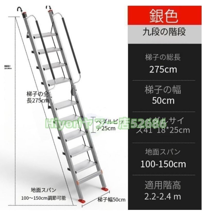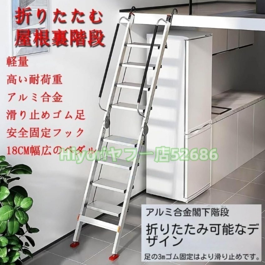 多機能屋根裏階段軽量アルミ合金折りたたむ伸縮はしご 脚立はしご ロフトはしご 屋内 滑り止めゴム足 ロフトラダー バルコニー 階段 壁掛屋
