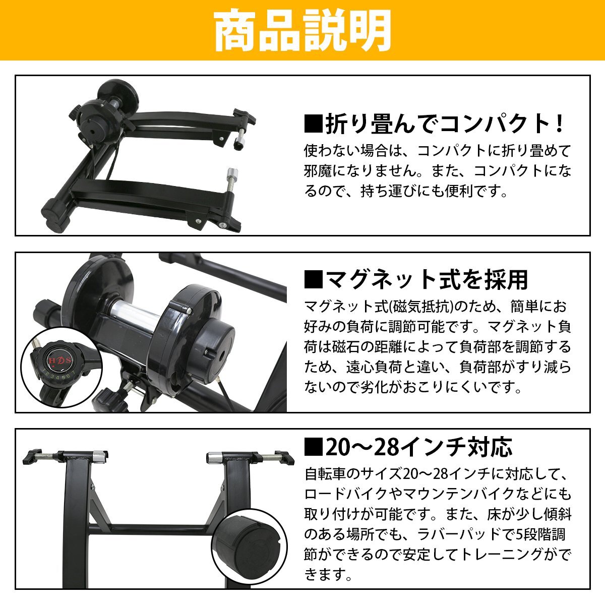 室内用 自転車 トレーニングローラー 25/26/27/28インチ 7段階調節 マグネット式 トレーニングサイクル ロードバイクサイクル 固定ローラー