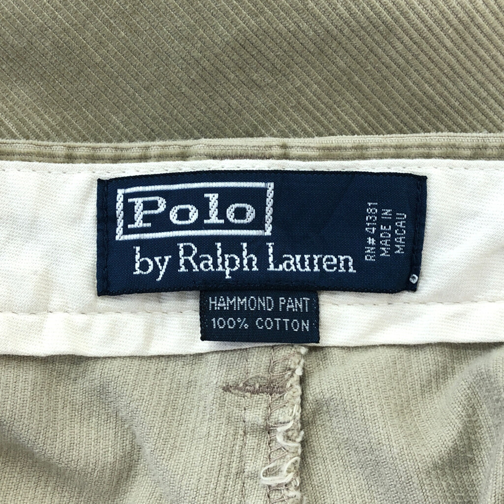 | 【商品管理番号】 S0646 【ブランド】 Polo by Ralph Lauren/ポロ ラルフローレン 【サイズ】 W36 L30 【実寸サイズ】 ウエスト:約86cm 股上:約42cm 股下:約75cm わたり幅:約37cm 裾幅:約22cm 【主な素材】 表地 : コットン 【色】 ベージュ 【仕様】 90年代 コーデュロイ HAMMOND PANT 【状態】 汚れ:もも、ひざ、スネ、ふくらはぎ キズ:裾、もも、ひざ、スネ | |||