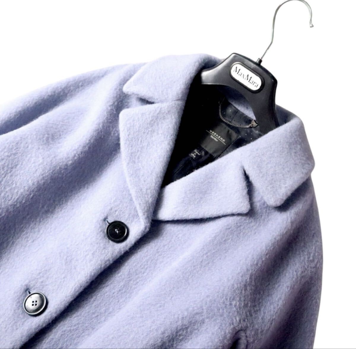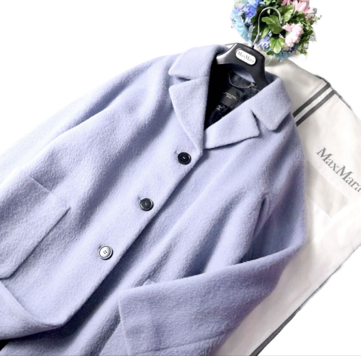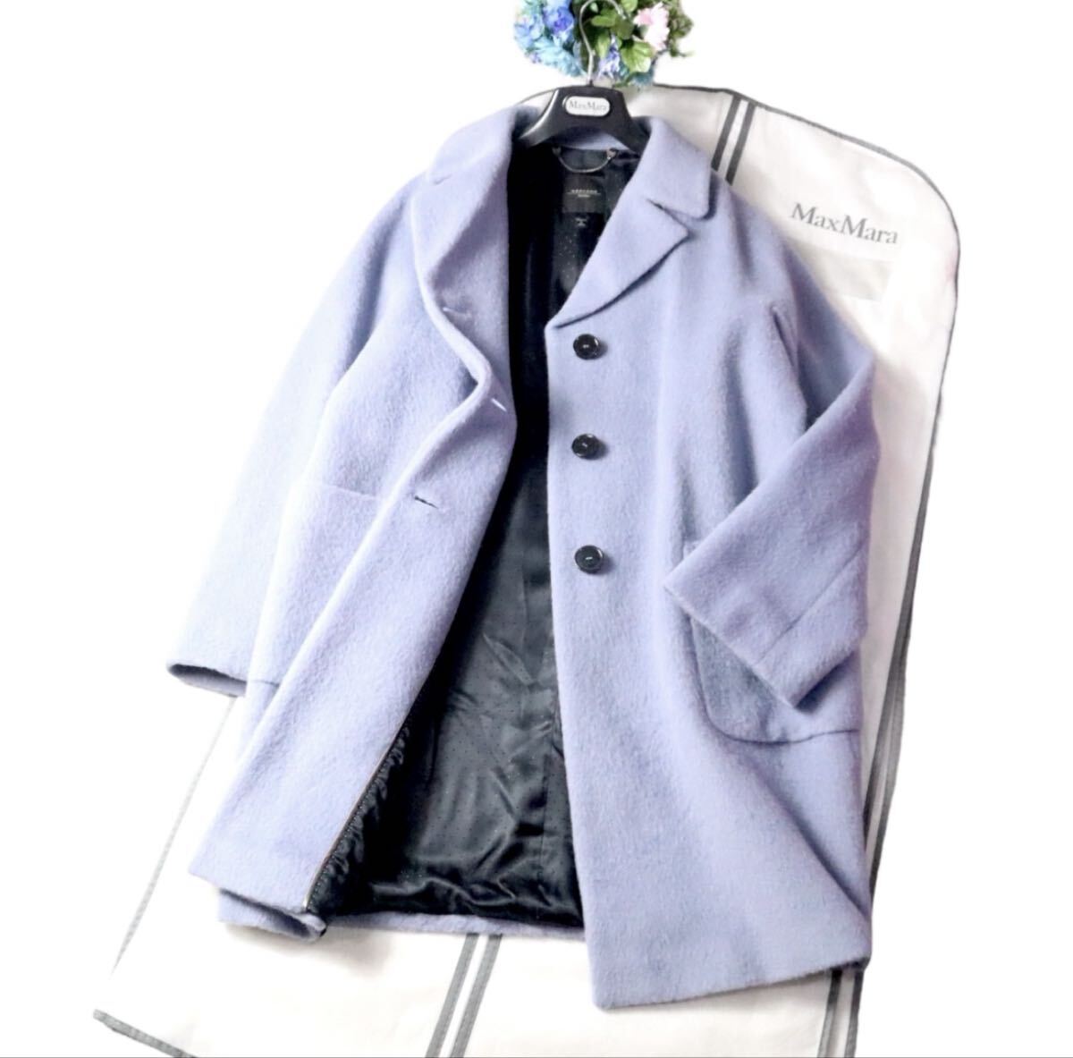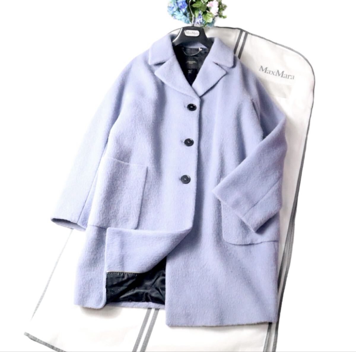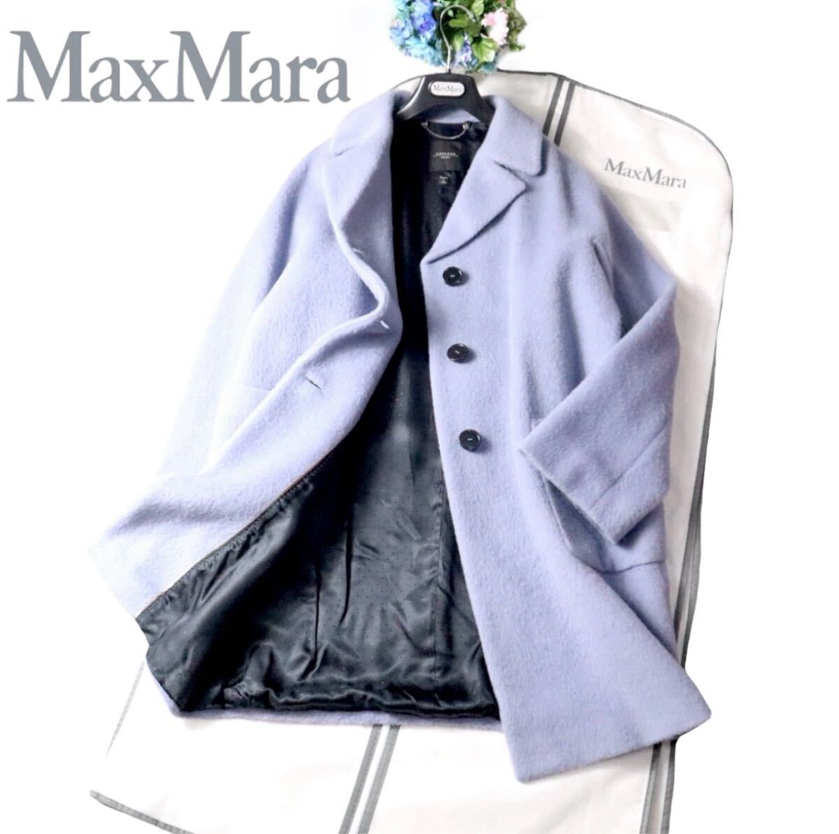 お色味は美しいパープル系のカラー、マックスマーラの中でも人気のあるお色味です。アルパカモヘアブレンド、毛長のお品物。