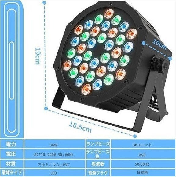 led舞台照明 DMX512 36W LEDライト ステージライト ディスコライト スポットライト リモコン付き 音声起動 自走機能付きステージライト 4枚