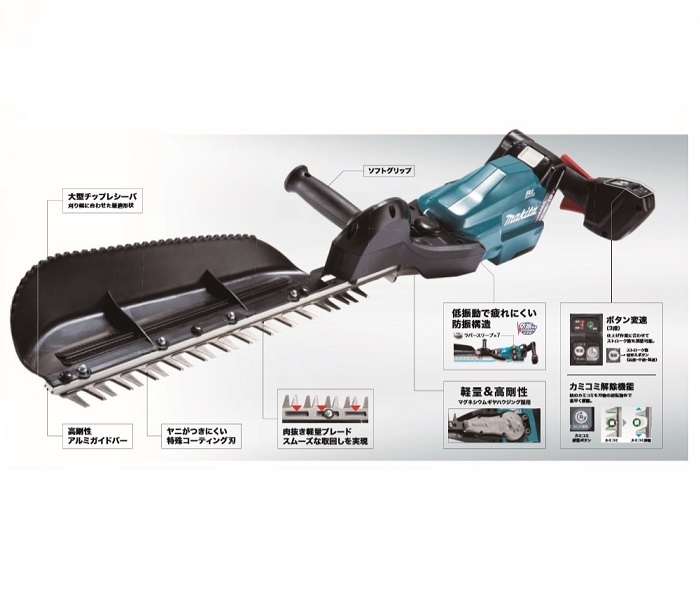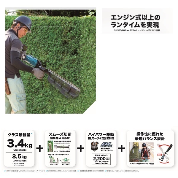 ※2020年2月現在マキタ調べ。500/600mmクラスプロ向けヘッジトリマにおいて。