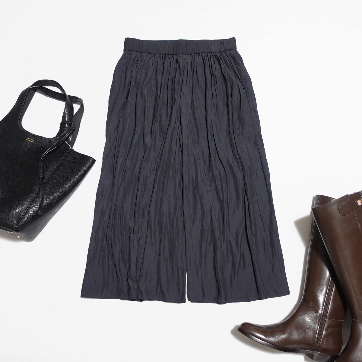 ゆったりとしたニットやカジュアルなアイテムと合わせてクラスアップに。