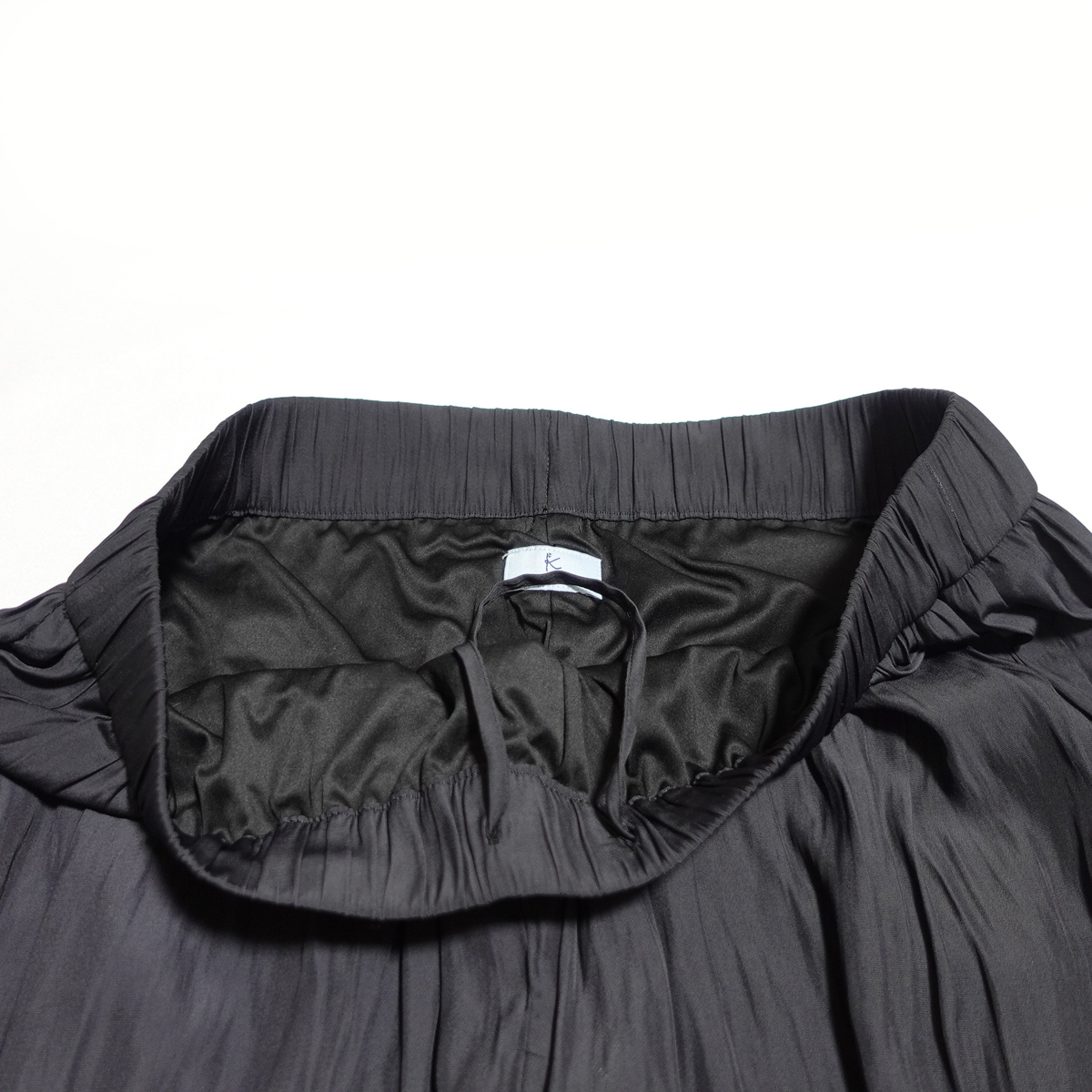 ウエスト内側はドロスト仕様で好みのウエストのサイズに調整でき揺れ動くたびに女性らしさを演出するシルエット。