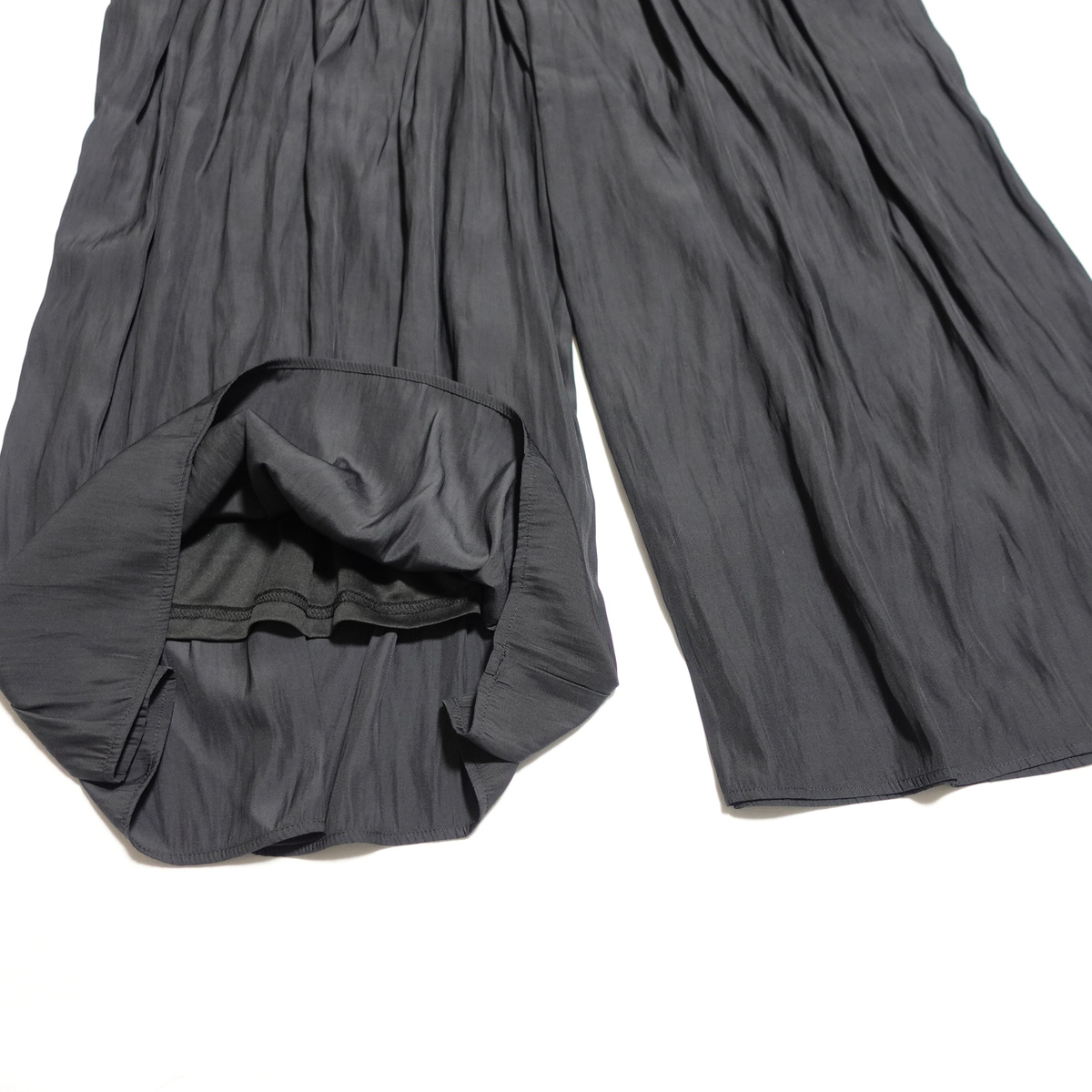 ゴムウエストギャザーライトデシンパンツ。