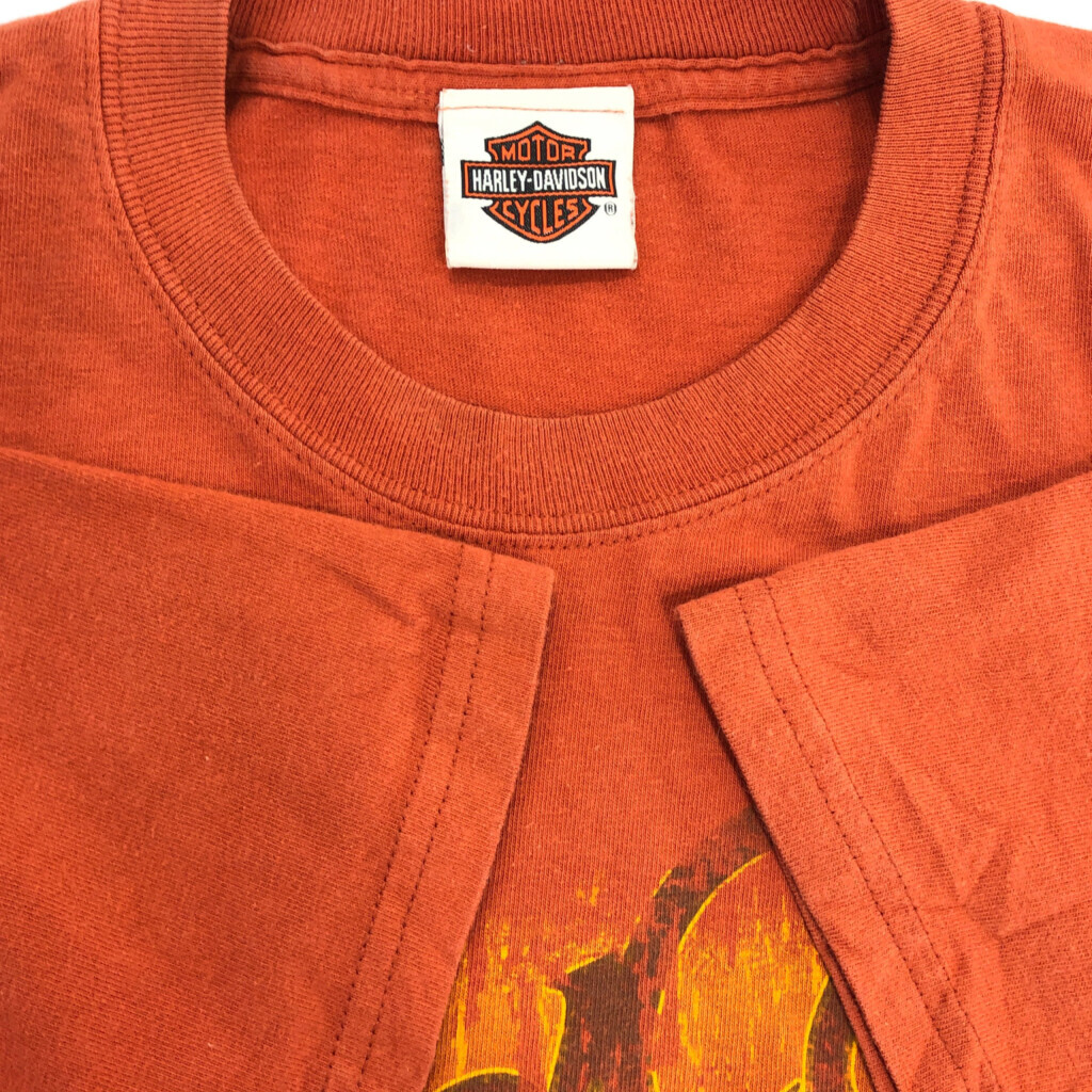 | 【商品管理番号】 T8312 【ブランド】 HARLEY DAVIDSON/ハーレーダビッドソン 【サイズ】 L相当 【実寸サイズ】 肩幅:約52cm 着丈:約71cm 身幅:約55cm 袖丈:約19cm 【主な素材】 表地 : コットン 【色】 オレンジ 【仕様】 モーターサイクル 【状態】 汚れ:胸、腹部、背中、裾 | |||