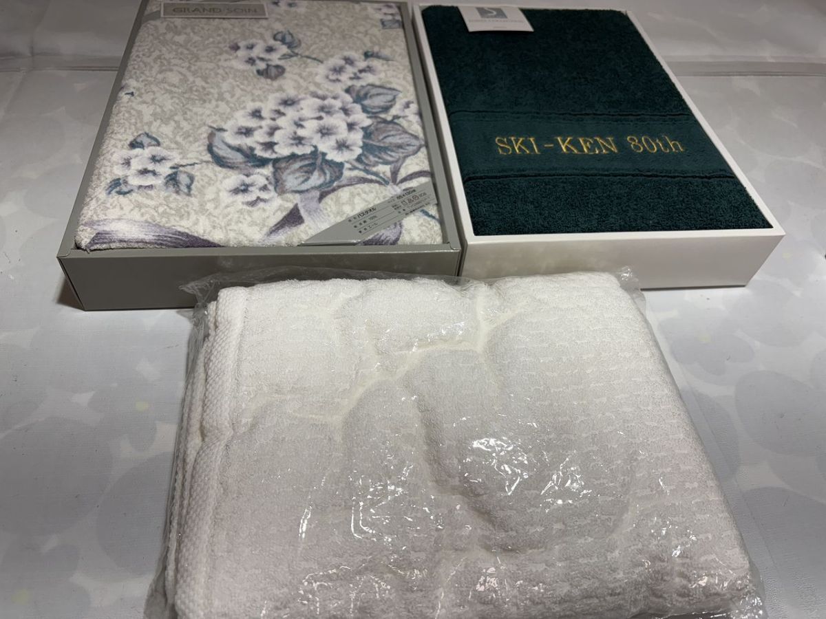 ■商品名バスタオル・フェイスタオル・ハンドタオルまとめ 41点■内容{サイズ(約)/(画像参照/素人採寸)}未使用品※長期保管品の為汚れあり《シミ》箱から出して梱包点シミ・シール跡のシミがついてるものありバスタオル×6フェイスタオル×25ハンドタオル×10・現在スマートフォンでは文章の表示が異常になる場合がございます。不明点などございました際はご質問ください。・梱包サイズ、送料は下部の発送詳細欄に記載がございます。ご参照のほど宜しくお願い致します。■詳細・長期保管品。・状態→やや跡シミだけあり・大きさは画像を参照ください。・新品同様をお求めの方は購入を御遠慮願います。・画像の物が全てになります。・画像を参照の上ご判断宜しくお願い致します。・専門知識が無い為詳しいことはわかりかねます。・長期保管で保管期間/購入日は不明の為、品質保証はできかねます。・ご理解ご了承いただける方のみのご入札をお願い致します。■同梱について複数落札商品の同梱についてはヤフオク機能の《まとめて取引》よりご依頼ください。なお、ヤフオクの規定により落札後72時間以内の商品が同梱の対象になります。また、評価が低い落札者様につきましても《まとめて取引》がご利用頂けません。詳しくは以下にて、宜しくお願い致します。【まとめて取引の手順】【まとめて取引の条件】・割れ物など壊れやすい物は、破損防止の観点から同梱はできませんが、落札後《まとめて取引》にてご対応いただけた場合は複数個口にて発送致します。送料は個別対応より割引になります。・個別取引にて同梱をご希望の場合は必ず送料連絡前に取引ナビにてご連絡いただけますようお願い申しあげます。