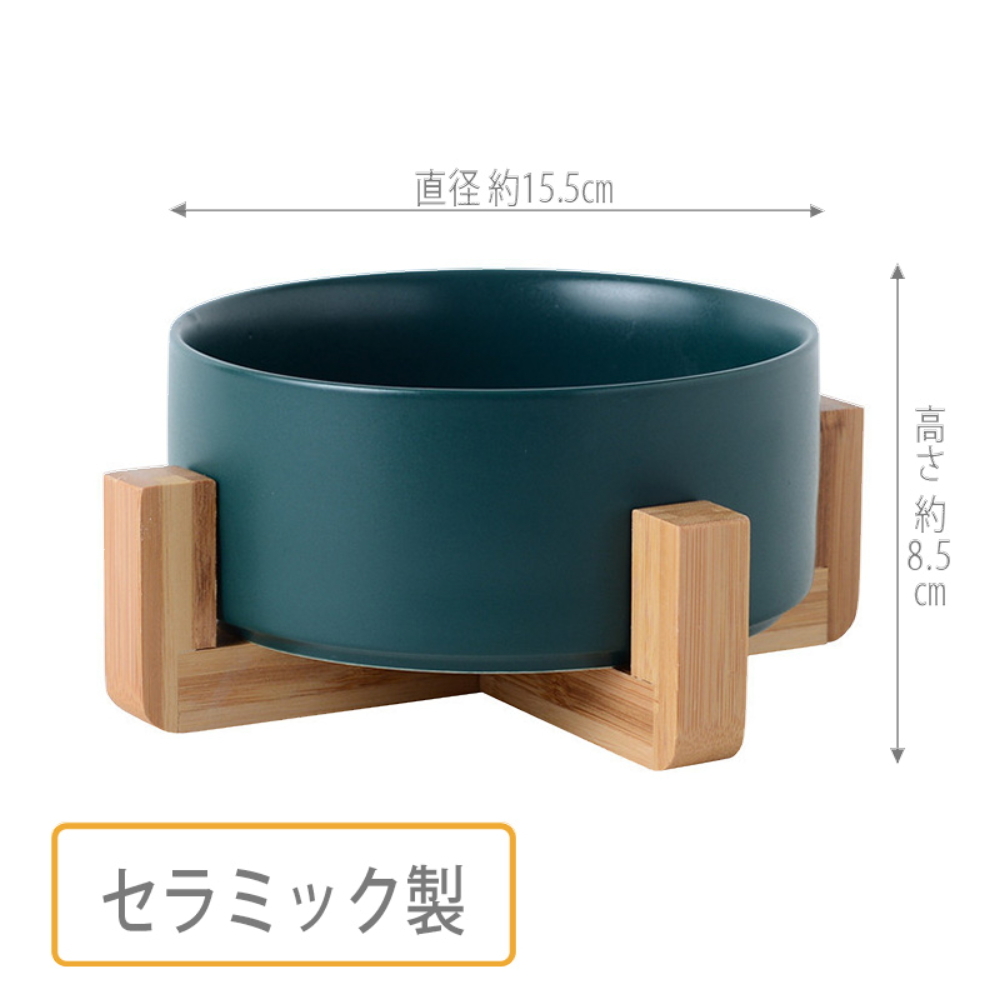 本製品は陶器製ボウルと木製スタンドを組み合わせたペット用食器です。毎日の食事や水補給をより快適に行うために設計されており、落ち着いた色合いとシンプルな構造が特徴です。陶器素材は表面がなめらかで汚れが残りにくく、水洗いがしやすいため衛生的な状態を保ちやすい点が大きな利点です。においが残りにくく飲み水の風味を損ねにくいため、フードと水の両方で使える汎用性の高さがあります。毎日の食事時間を整えたい方にとって扱いやすい仕上がりです。