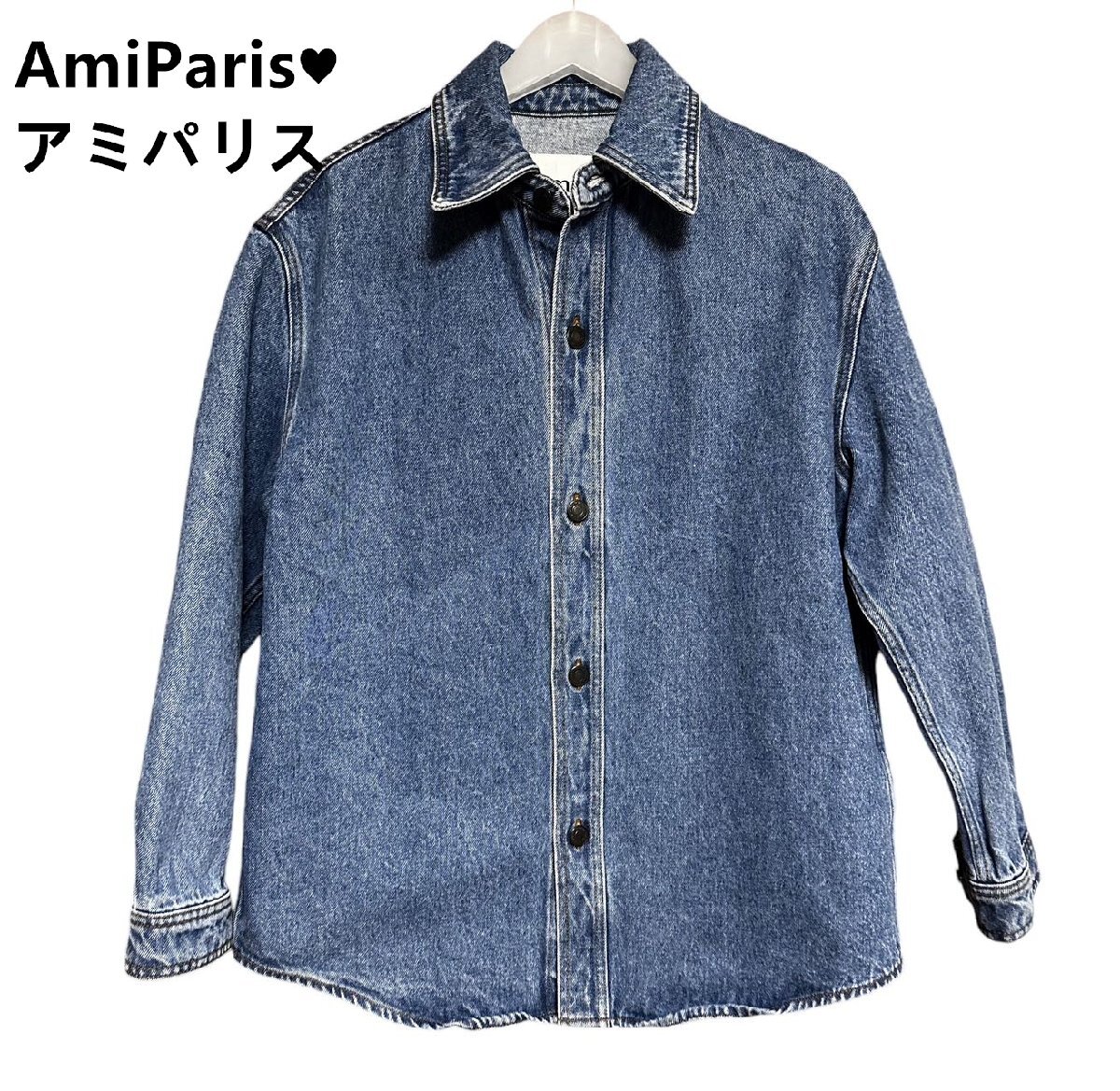 超美品◆正規品◆AMIPARISアミパリスデニムDenimジャケット厚肉メンズレディースアウターユニセックスブルー青