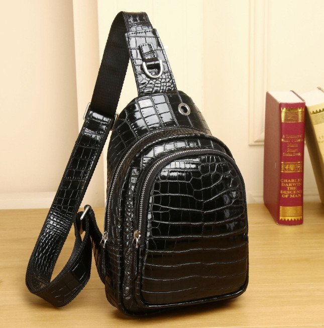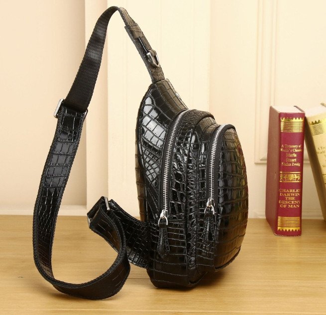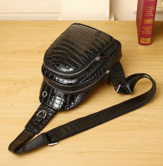 新品 クロコダイル本革 ワニレザー メンズバッグ 斜め掛け ボディバッグ 大容量 本革 センター取り アウトドア スリングバッグ