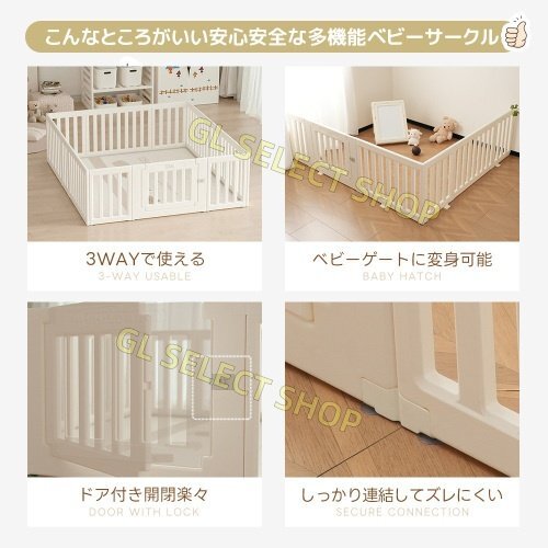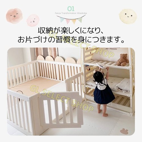 ベビーサークル 収納棚へ変身可能 扉付き ベビーゲート ベビーフェンス プレイヤード 簡単組立 柵 キッズ【内径180*200cm】