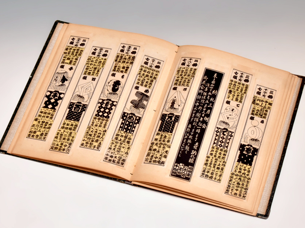 【真作】納札帖 納札 約150枚 まとめて 貼り込み帖 貼込帖 貼札 木版画 納札 火消し 納札 消し札 千社札 浮世絵 版画 |
