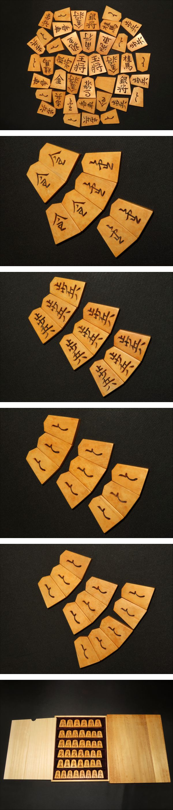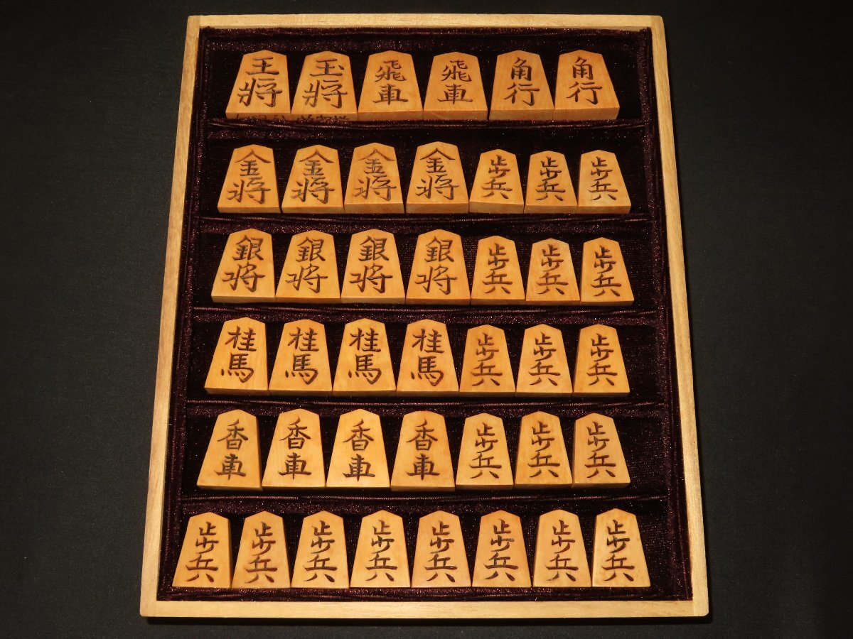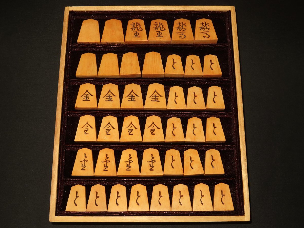 ▲木村文俊作金龍島黄楊柾目彫将棋駒▲桐平箱付