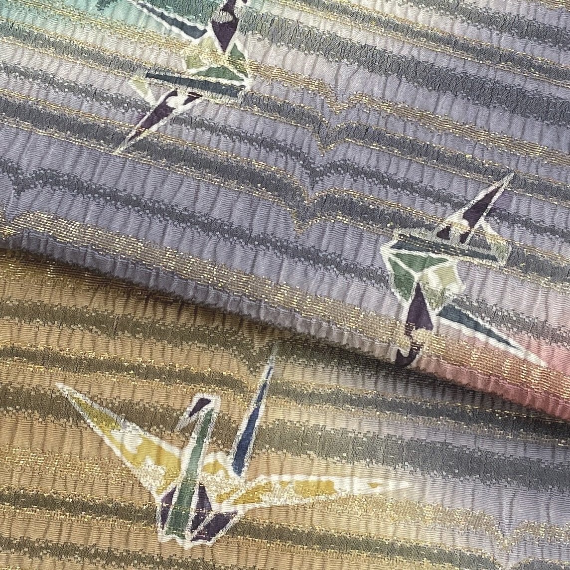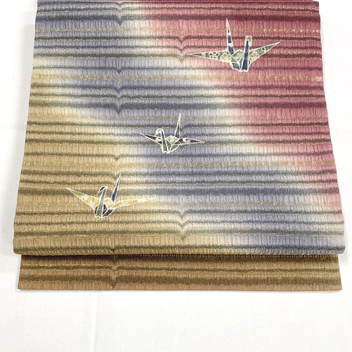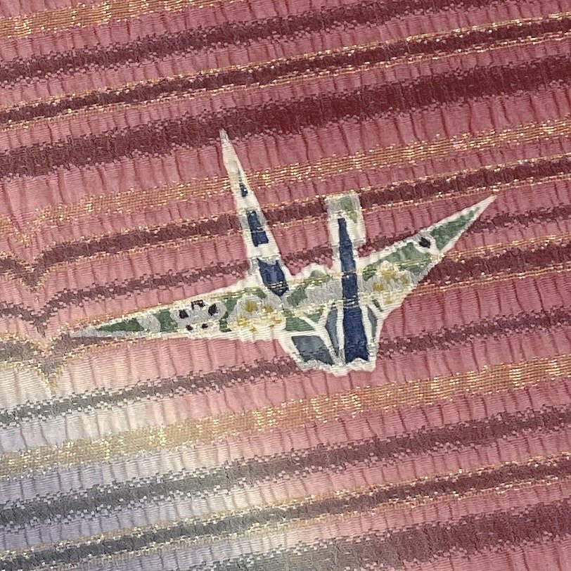 着物月花 折鶴 袋帯 お太鼓柄 正絹 金糸 きものやまと ガード加工 ob7644
