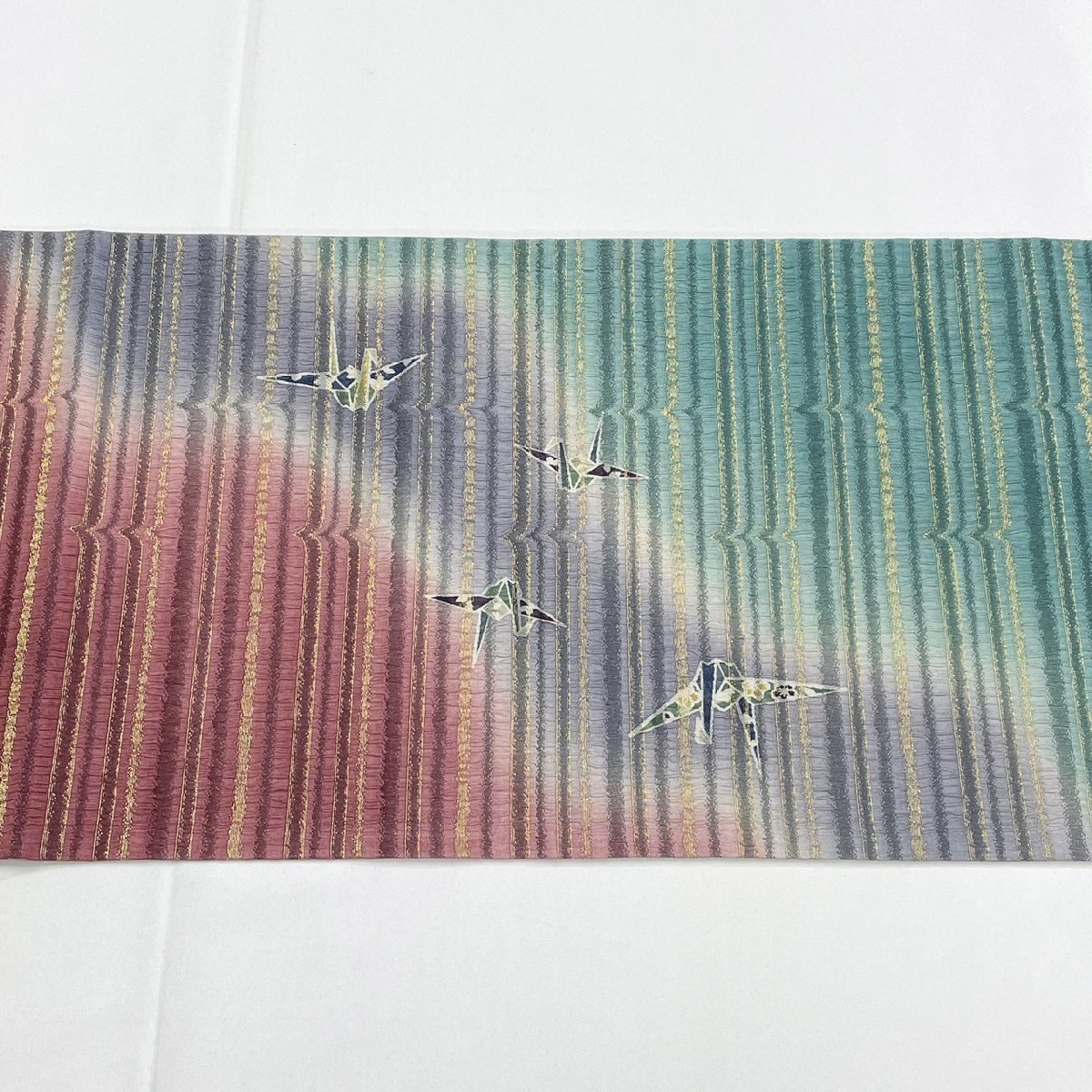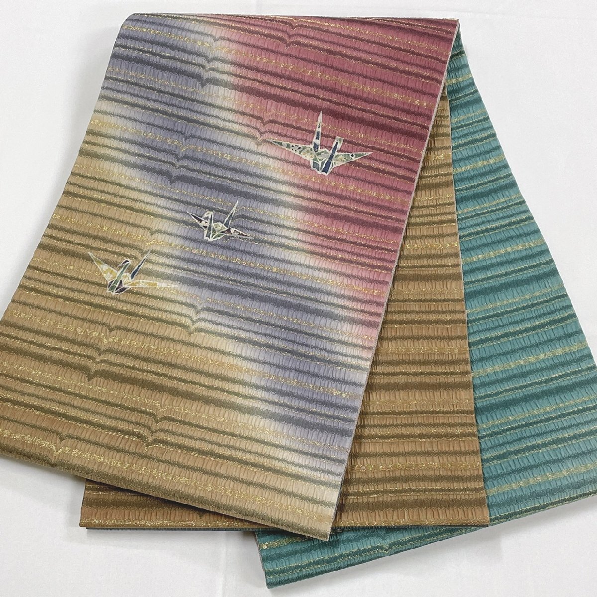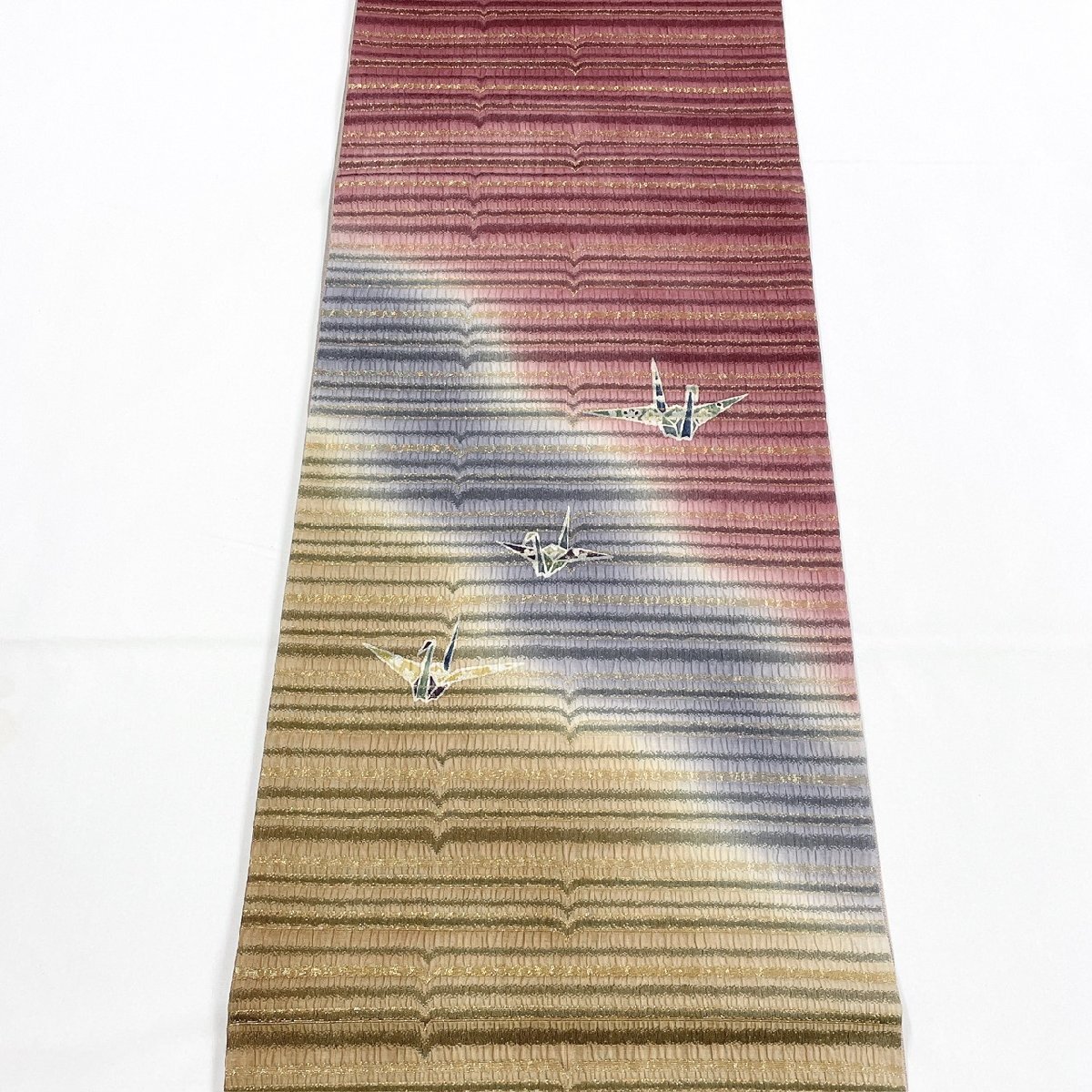 着物月花 折鶴 袋帯 お太鼓柄 正絹 金糸 きものやまと ガード加工 ob7644