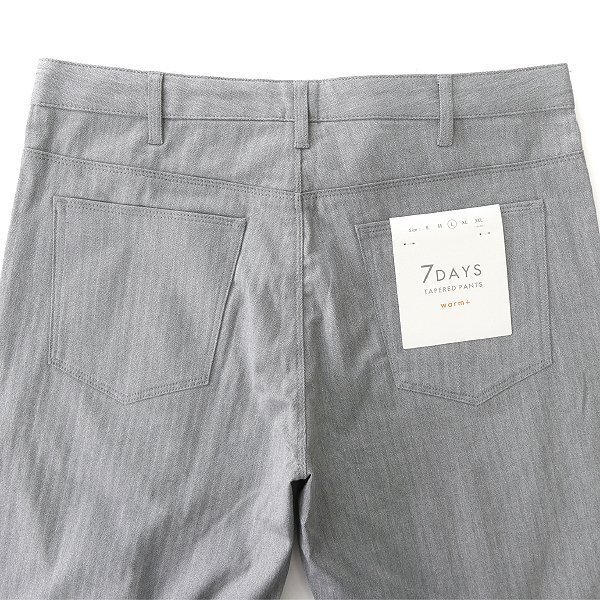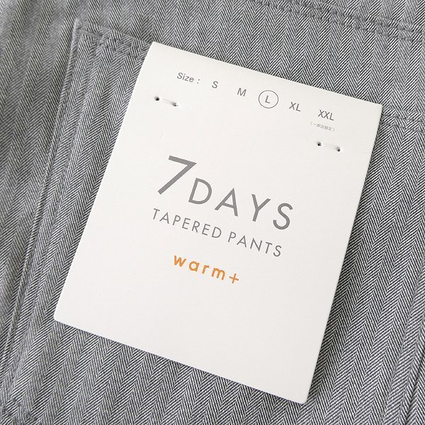 コットンにストレッチ素材を混紡した、無地見えヘリンボーン柄素材の7DAYSパンツです。 やや厚みがある素材なのにソフトでストレッチが効いており、動きやすく快適な穿き心地に仕上がっています。 シルエットは、すっきり見えを追求した美脚テーパードシルエットで、足元をスッキリさせて脚長効果も期待できます。 裏起毛をした素材を使用しているため穿き心地が良く、肌にフィットして寒い日も暖かさを感じられます。 ONにもOFFにも対応できるよう、腰部分にマーベルトを採用しシャツをINしてもでにくい仕様となっています。 マシンウォッシャブル仕様で、お手入れが簡単なのも嬉しいポイントです。 【デザイン】 ・ノータック ・ジッパーフライ ・テーパードシルエット |