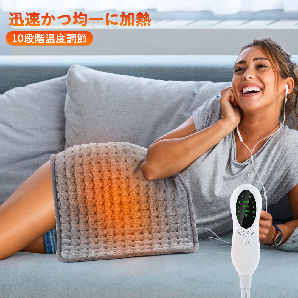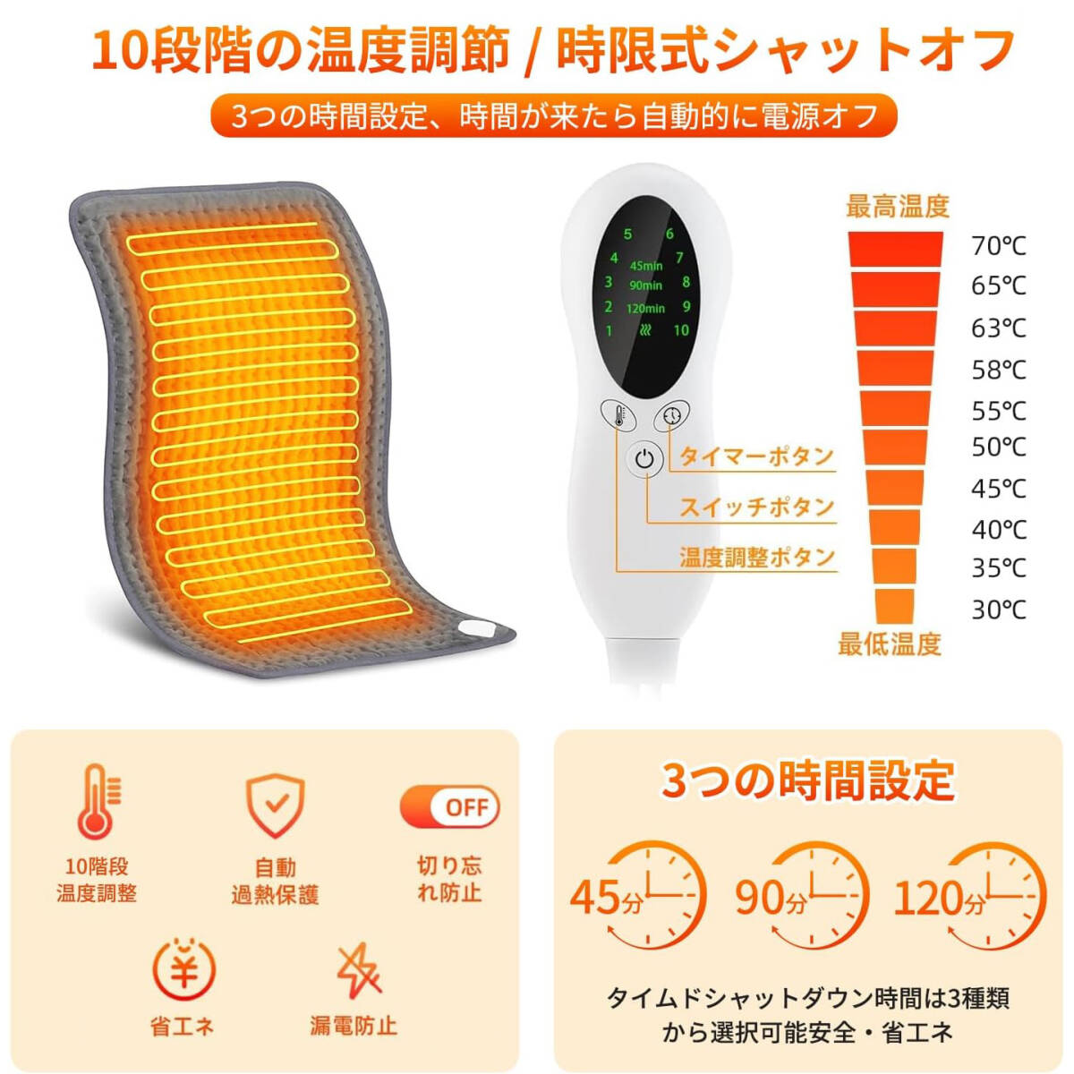 ミニホットカーペット 一人用 30x60cm タイマー機能付き 10段階温度調節速暖 過熱防止 省エネ 丸洗い可能 電気座布団 防寒対策