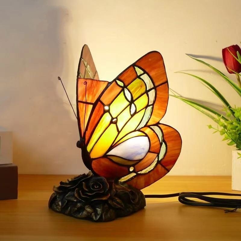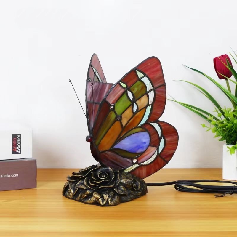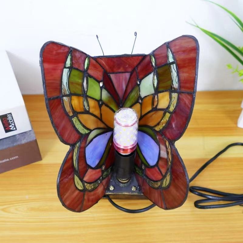 新品未使用!ステンドグラス 蝶 高23cmインテリア レトロ テーブルランプ ステンドグラスランプ 卓上照明 ライト