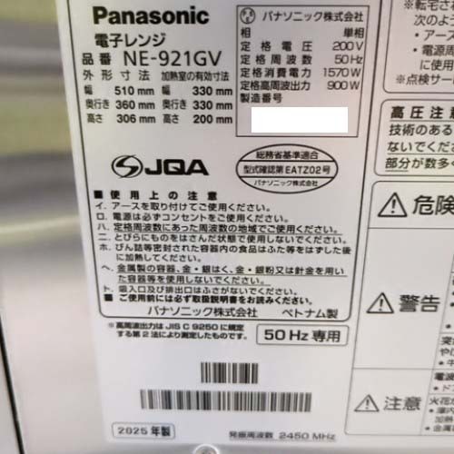 【業界最長1年保証】電子レンジ パナソニック(Panasonic) NE-921GV-5 業務用 中古/送料別途見積
