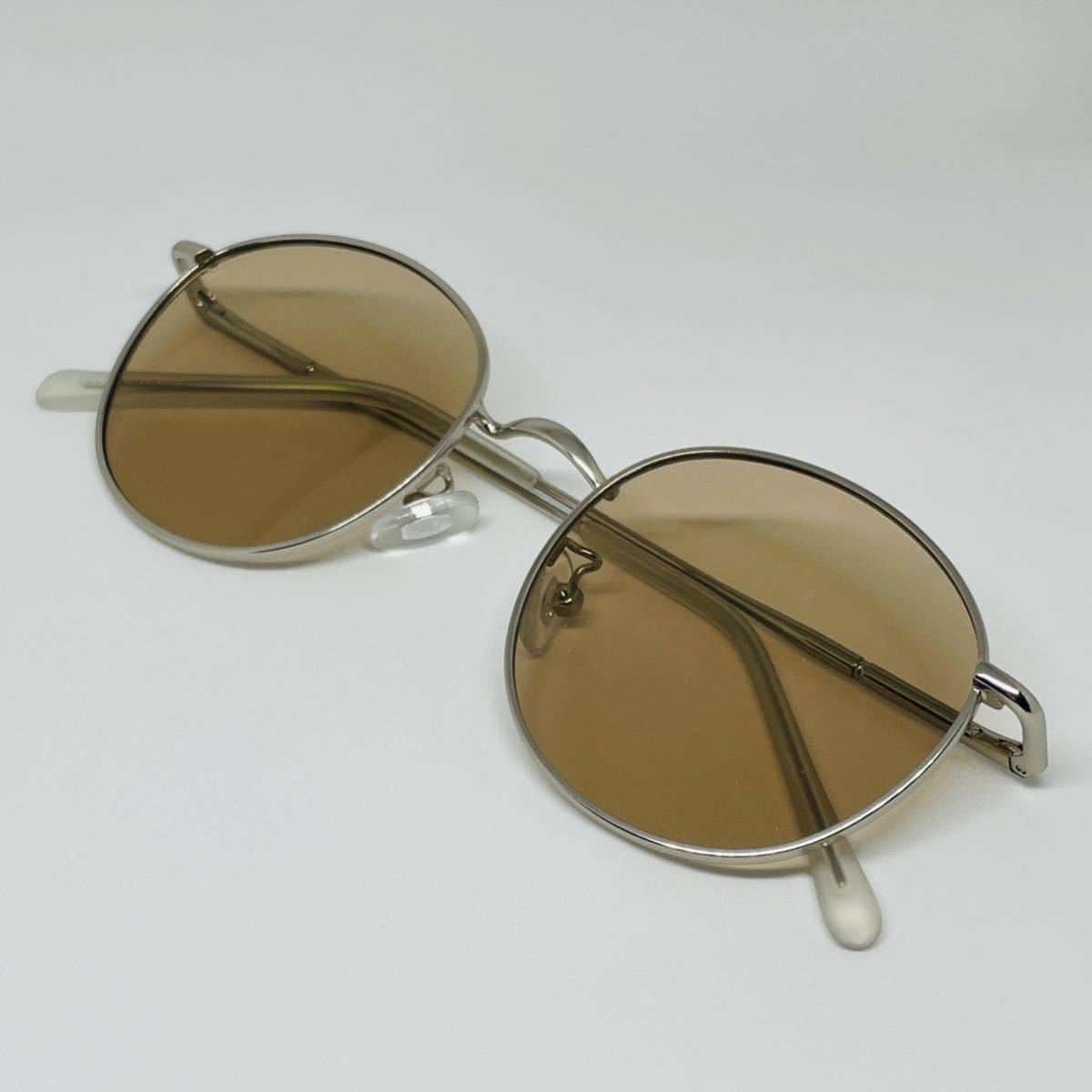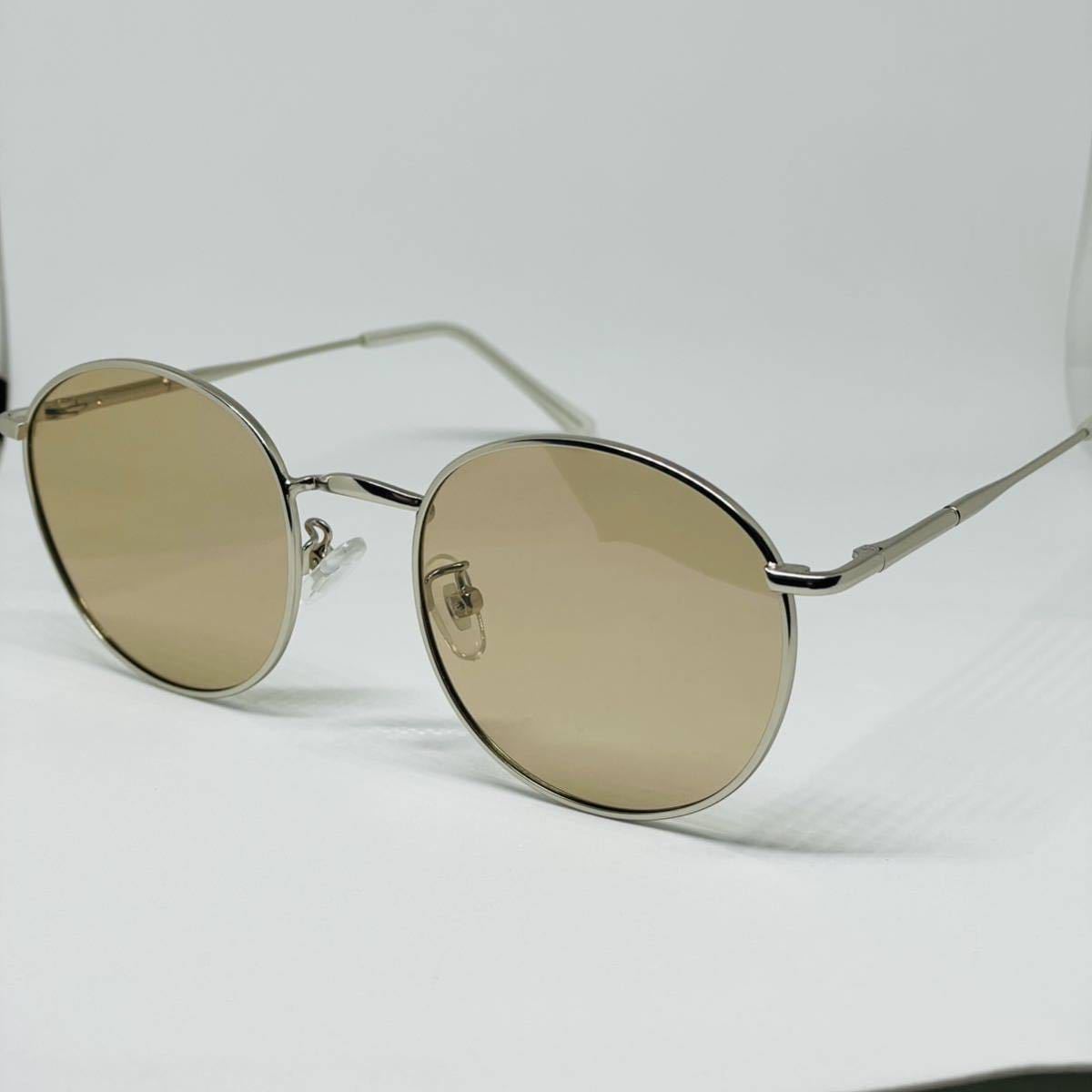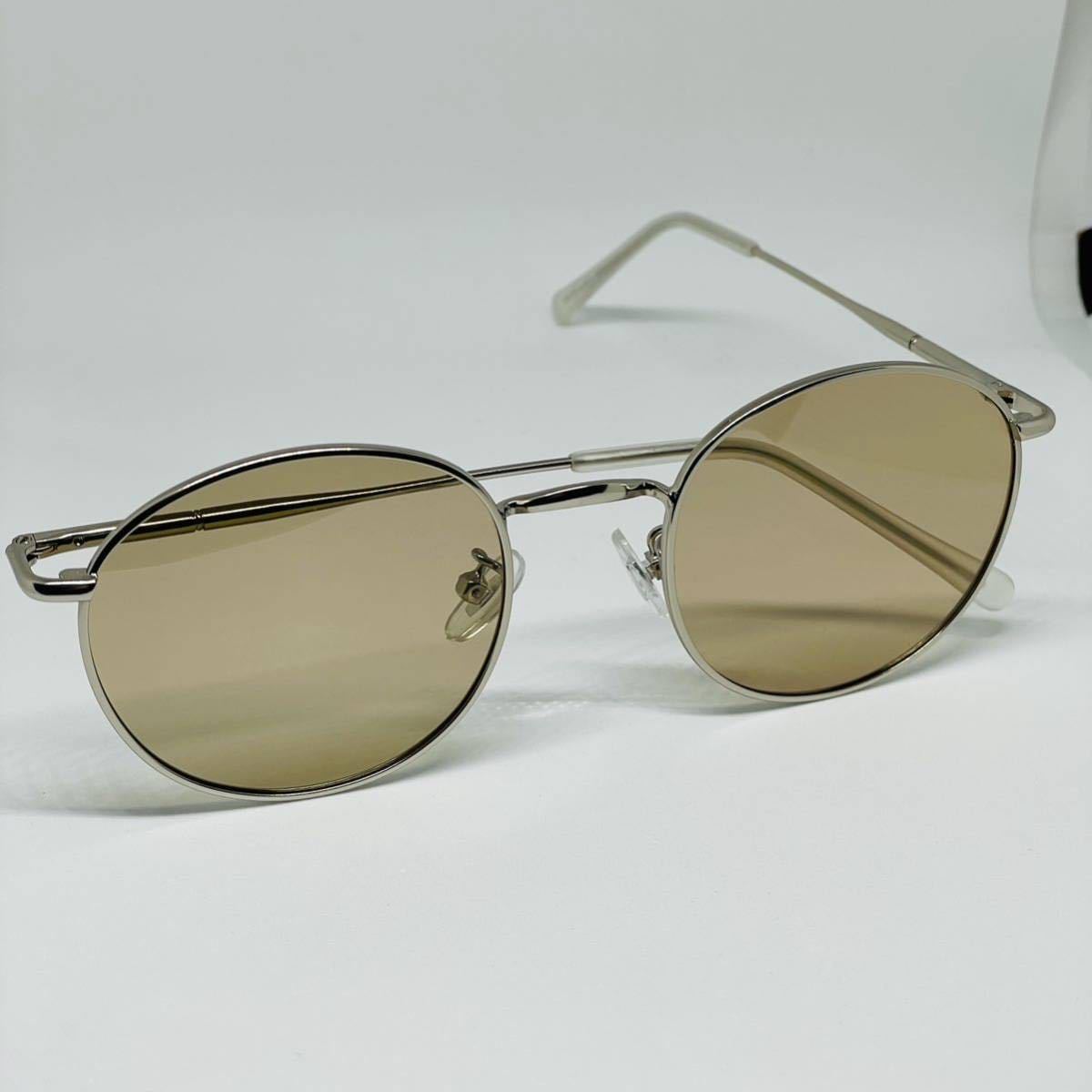 調光 偏光 ラウンドメタル UVサングラス ボストン ライトブラウン レンズ マットシルバー 銀縁 伊達メガネ メンズ レディース