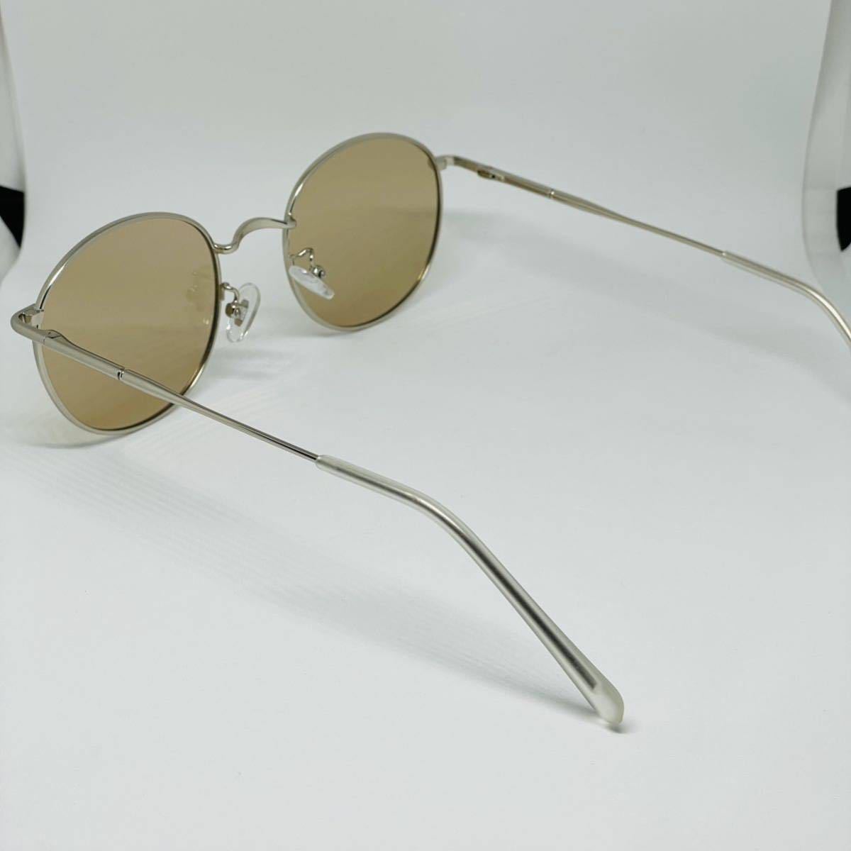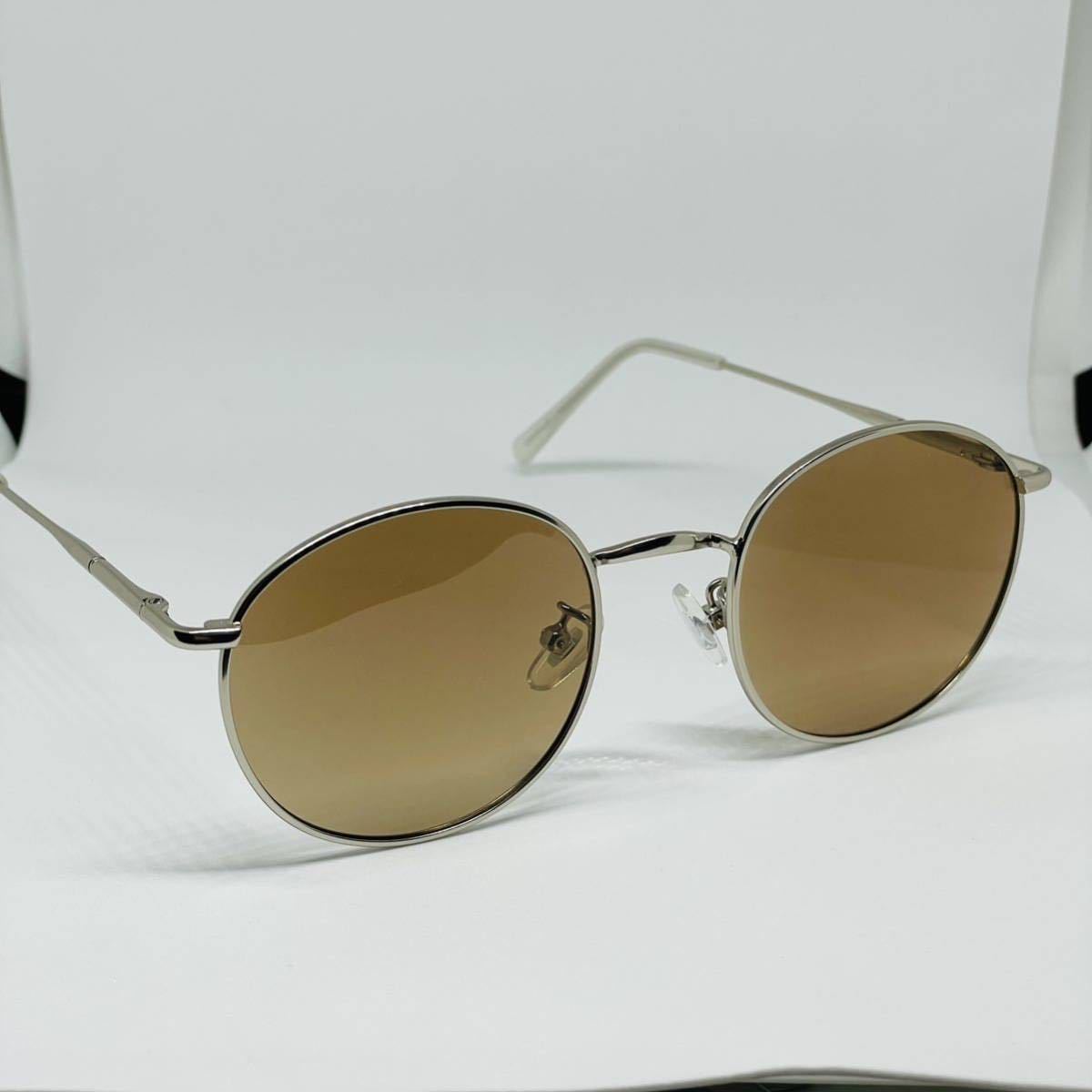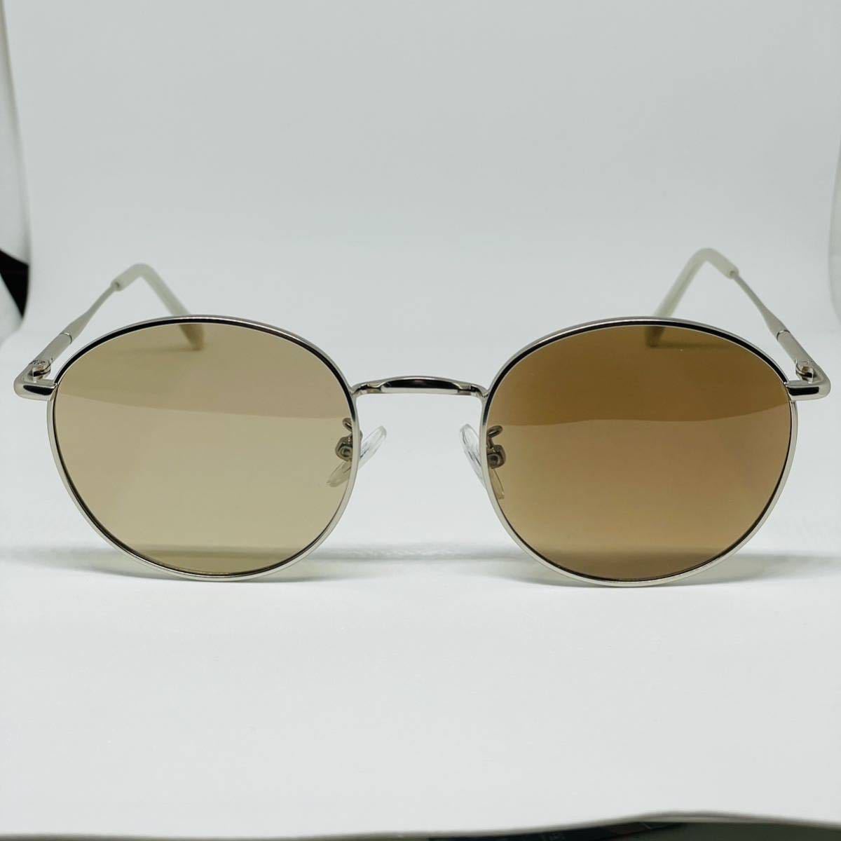 調光 偏光 ラウンドメタル UVサングラス ボストン ライトブラウン レンズ マットシルバー 銀縁 伊達メガネ メンズ レディース