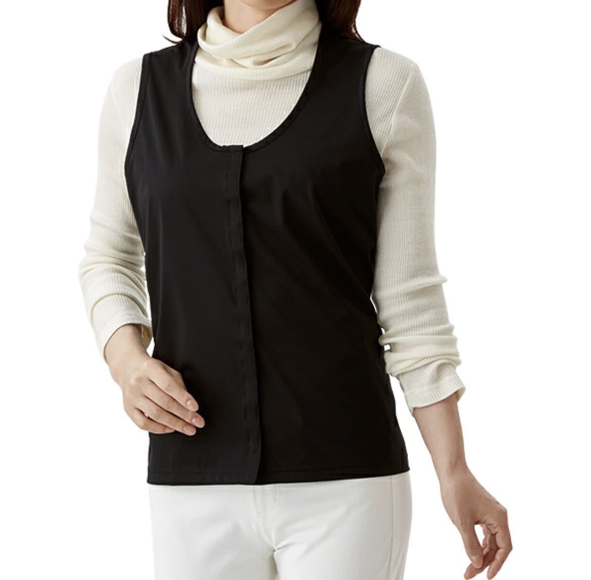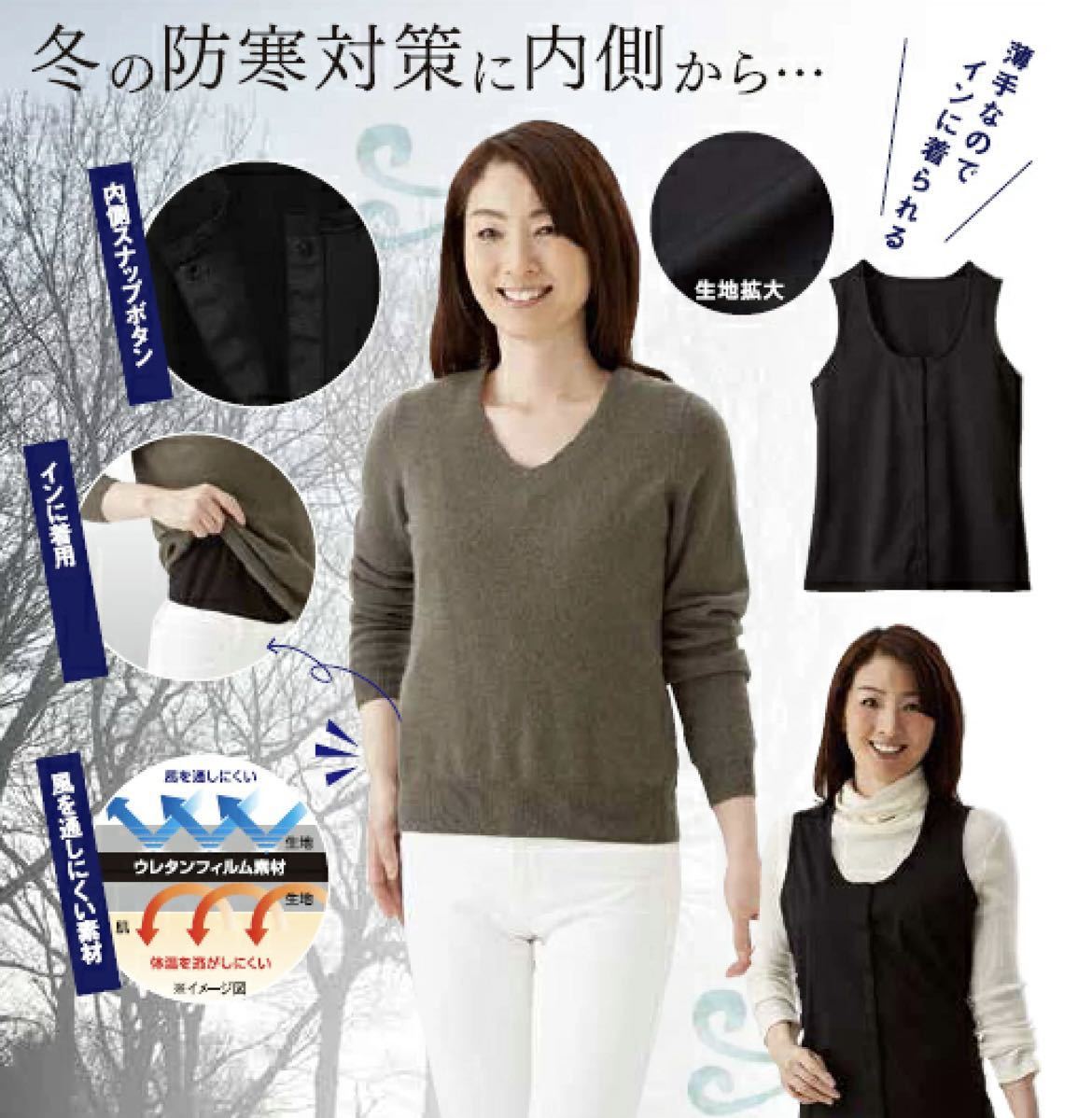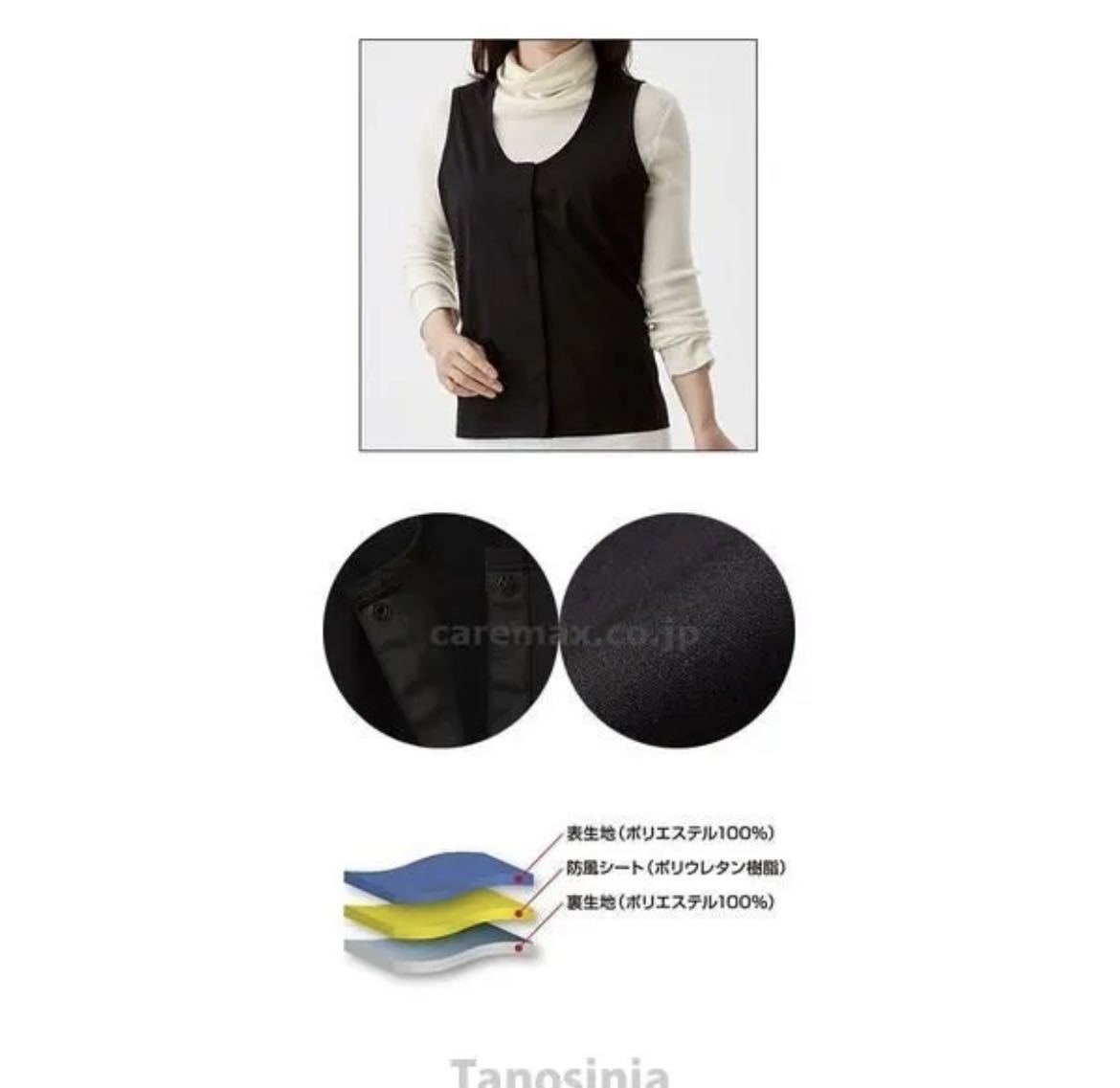 ◇外気の冷風を通さない防風シートを挟み込んだ素材で作った防風ベスト。
