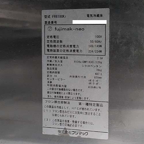 【業界最長1年保証】縦型冷蔵庫 フジマック FR6180Ki 業務用 中古/送料別途見積