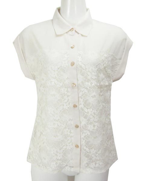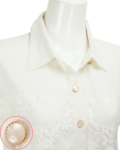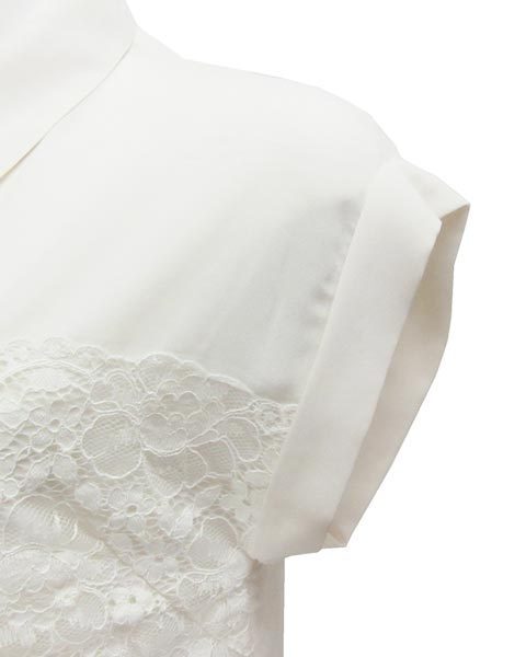 | 透け感のあるシアーブラウス。身頃部分にはレースがたっぷり使われた上品なデザイン。やや落ち感のあるデザインで、ビジネスシーンからオフのキレイ目スタイルまで幅広くお使い頂けます。 |