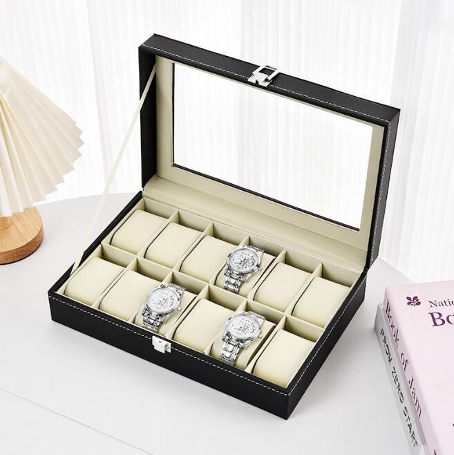 人気推薦腕時計 収納ケース 12本用 PU革制 レザー 展示 ウォッチケース ボックス ブラック
