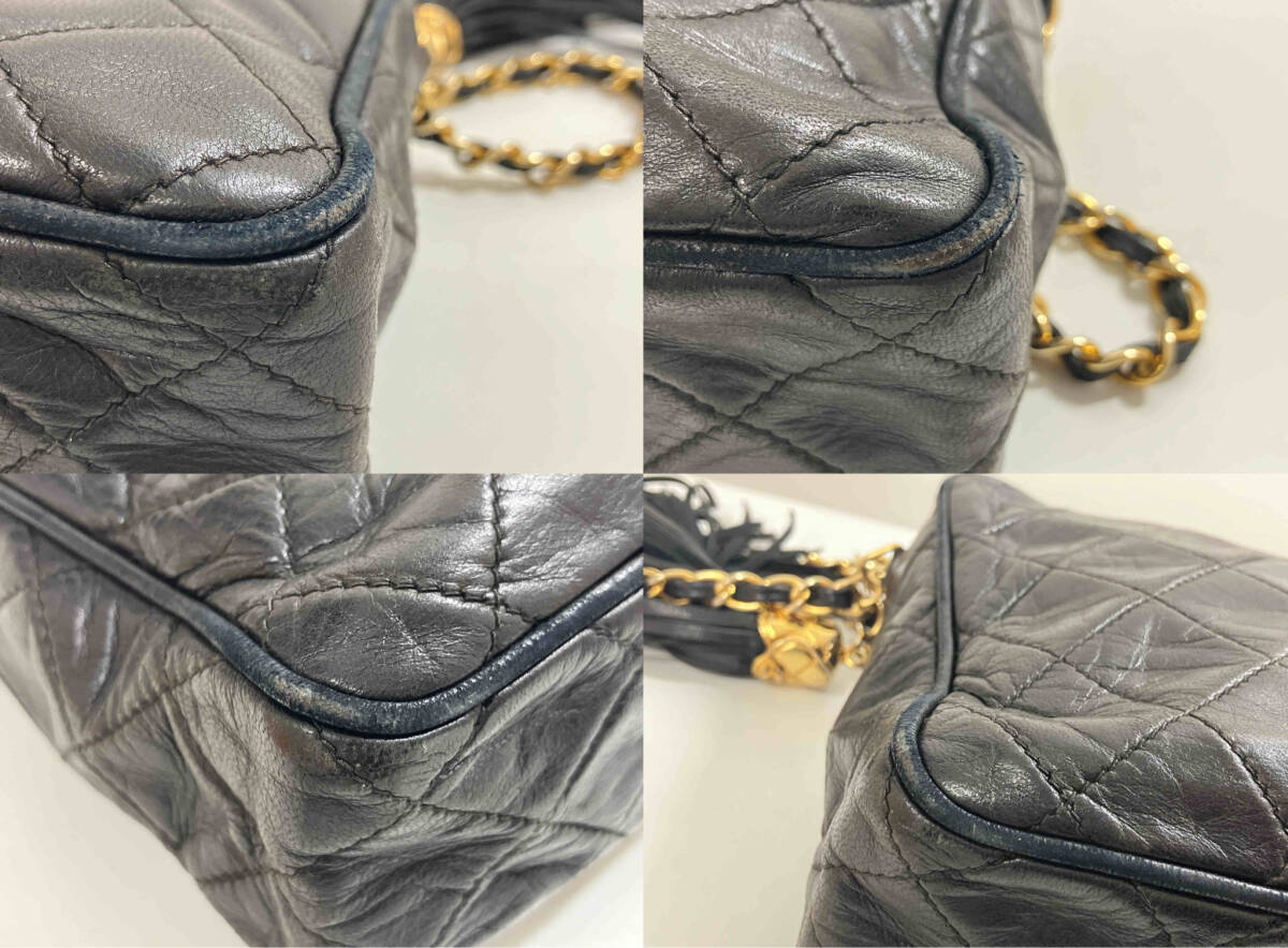 | 【商品情報】 ブランド名:CHANEL アイテム名:タッセルチェーンショルダー ライン名:ラムスキン サイズ:縦約19cm、横約23cm、奥行き約6cm ショルダー長さ:約98cm 内ポケット×1 【状態】 ファスナー・ショルダーメッキ傷み 角スレ 型崩れ 【付属品】 鑑定書 ギャランティカード ・サイズに関しましては素人計測値になってしまうためご参考までにお考えください。 状態をご確認の上ご入札お願い致します。 | ||||||