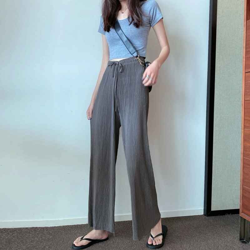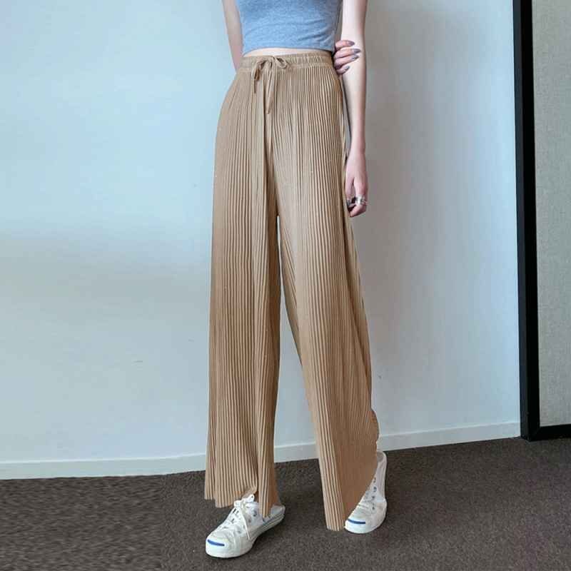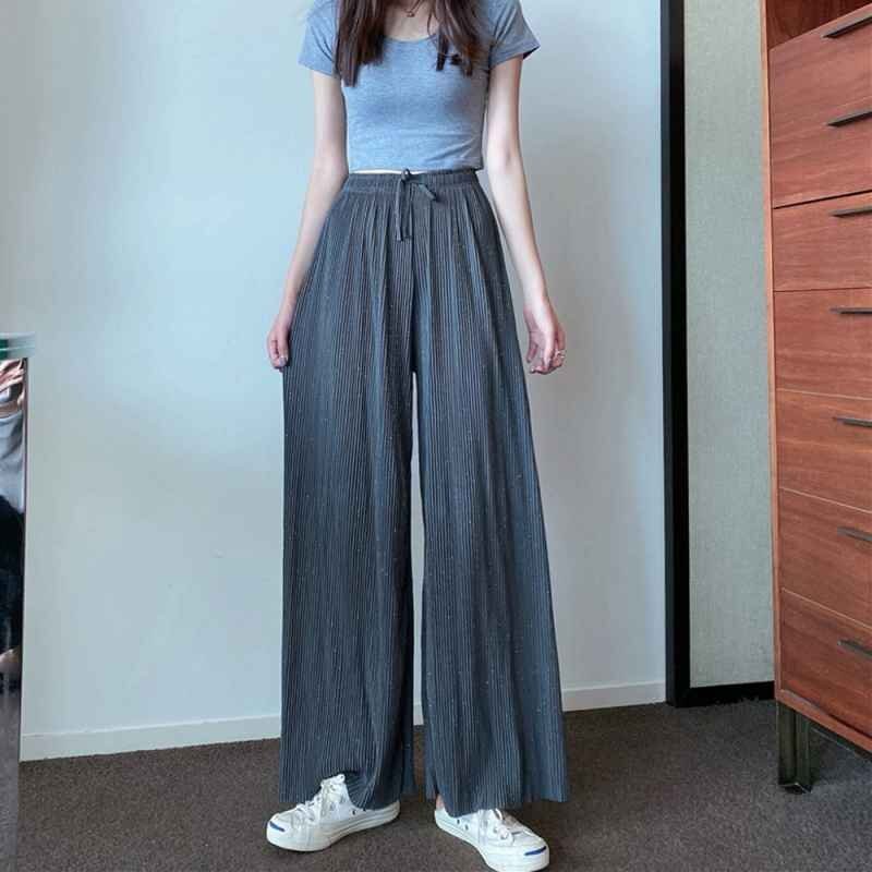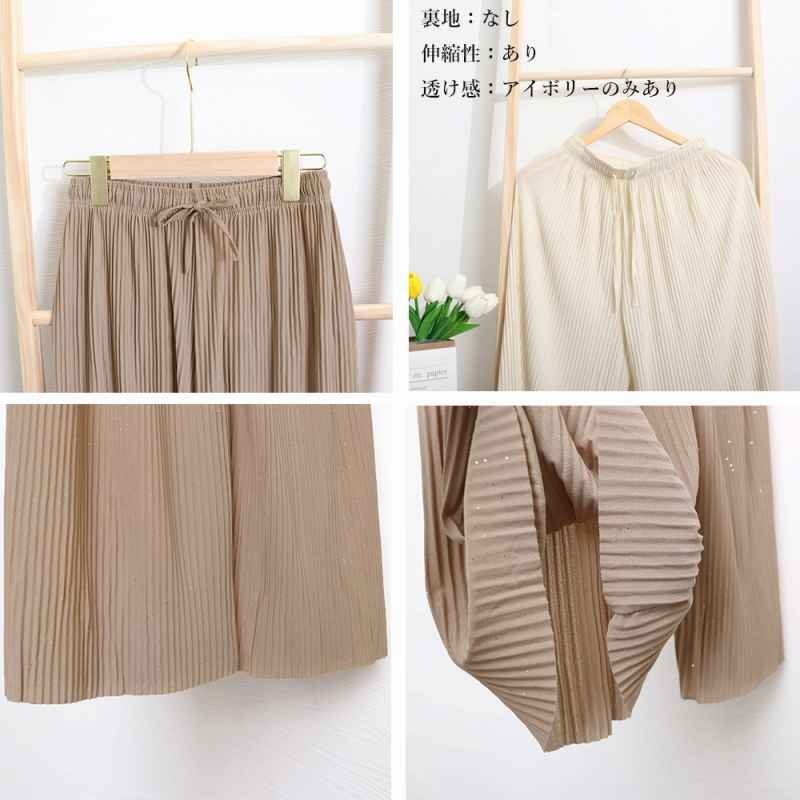 歩く度にひらひら揺れるしなやかなラメ付き生地で仕上げたリラクシースタイルのプリーツパンツ