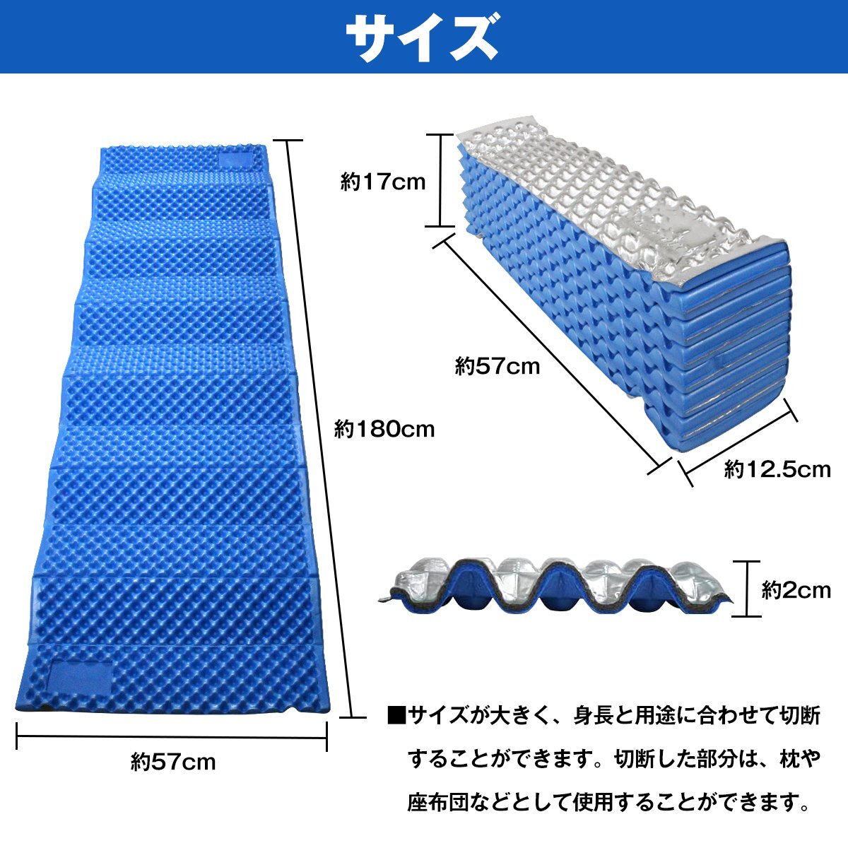 ●展開サイズ(約):幅57cm×長さ180cm×厚さ2cm