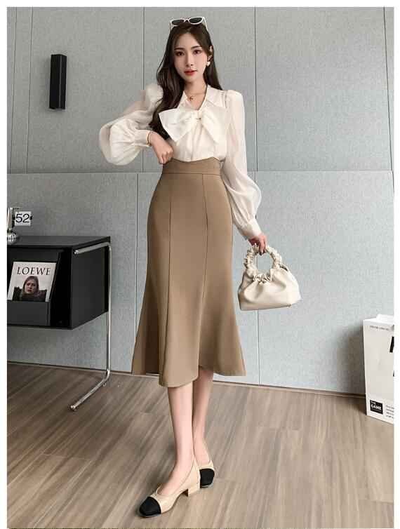 秋冬新作 スカート ワンステップスカート スカート ロング丈 マーメイドスカート M ブラック