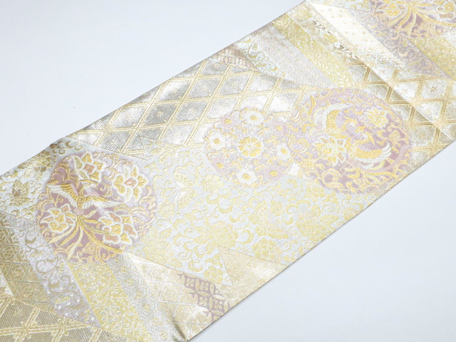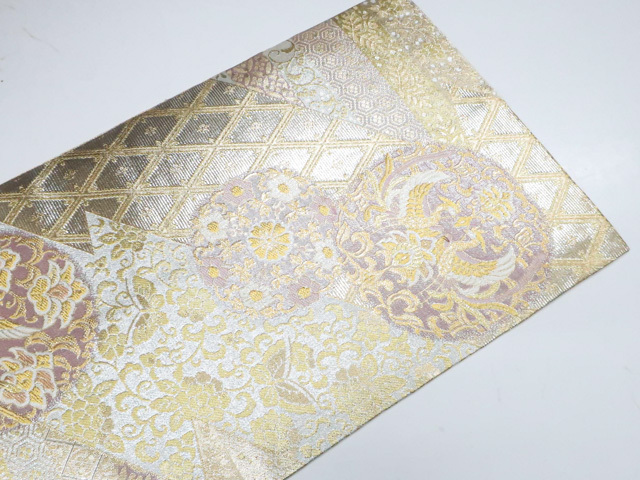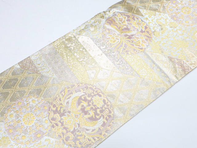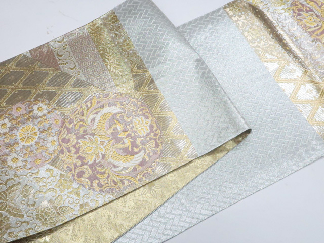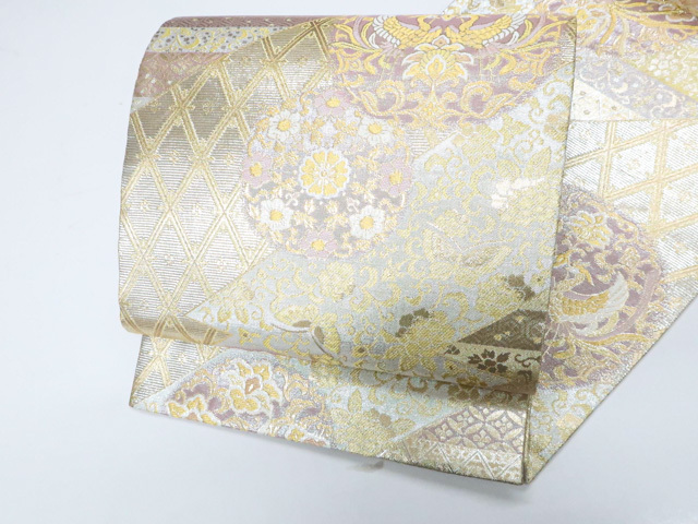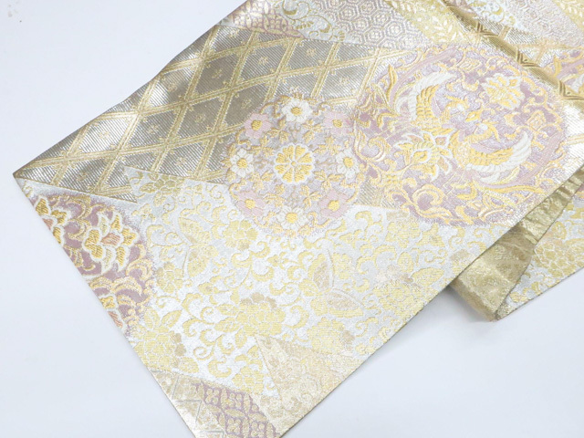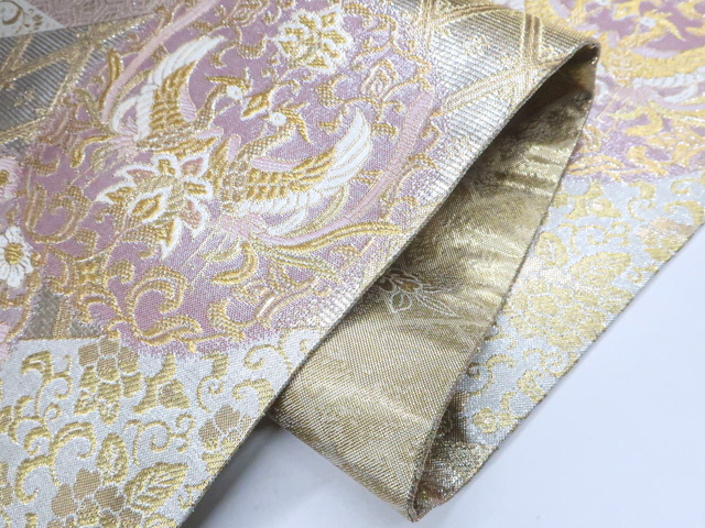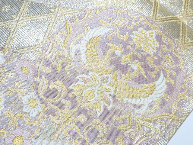 《京都一輝堂》袋帯 六通柄 向かい鳥 唐草 金糸 正絹 25b11-2233