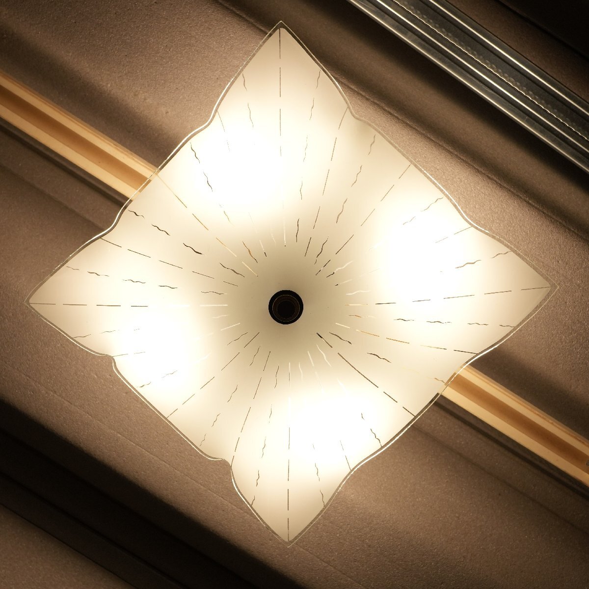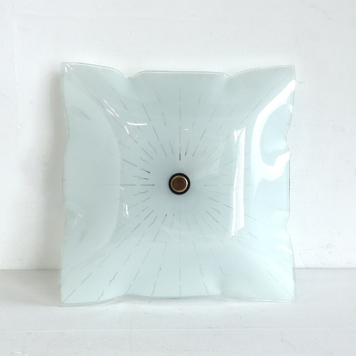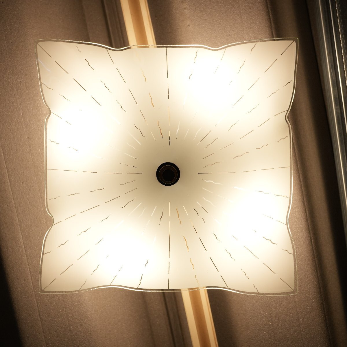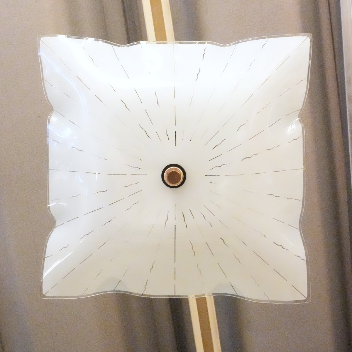 | 商品説明 explanation | 推定1960年代頃のスクエアガラスシェードのシーリングランプです。 スクエアガラスにフリルのような波打ちが施され、ミッドセンチュリー期らしいデザインです。 点灯時優しく温かみのある光が空間を照らしてくれます。 ご自宅やお店の照明にいかがでしょうか。 |