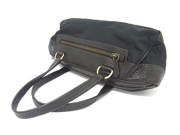 1円 ■美品■ PRADA プラダ テスートナイロン×レザー トートバッグ ショルダー レディース ブラック系×ブラウン系 FR7079