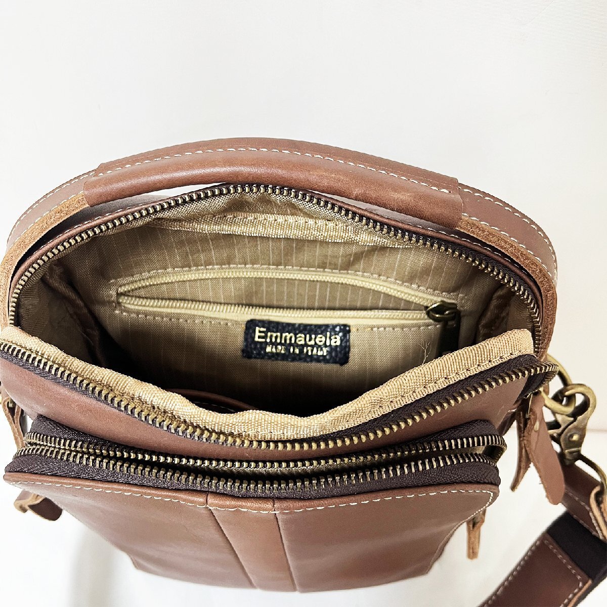 最高級・ショルダーバッグ 定価11万◆Emmauela・イタリア・ミラノ発◆上級本革 レザー 耐久 レトロ系 肩掛け 鞄 通勤 便利 メンズ