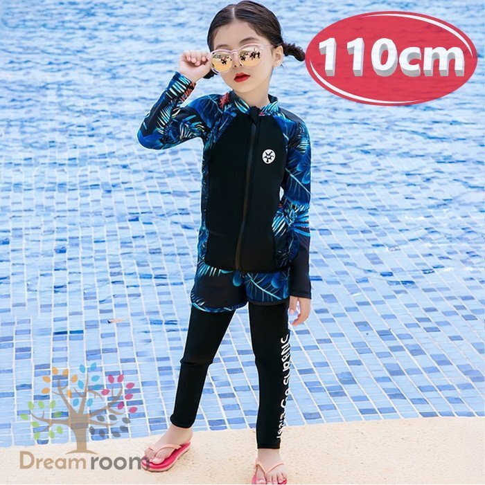 kids リゾートリーフ パーカータイプ ラッシュガード ボトム レギンス セットアップ女の子 【110cm】 K-242 スイムウェアー