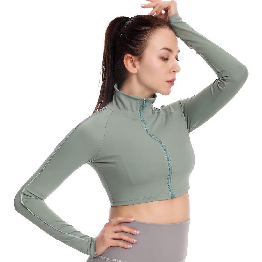 スポーツウェア ジャケット ヨガウェア レディース トレーニング スポーツ ストレッチ 通気 吸汗 速乾 高弾力 UVカット【グリーン】【M】