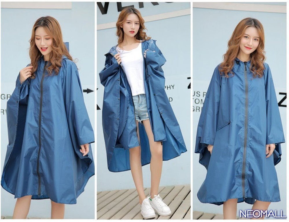 ☆ メンズ レディーズ レインポンチョ 【537】 ブルー XLサイズ レインウェア 通勤 通学 レジャー 自転車 カッパ 合羽 雨具