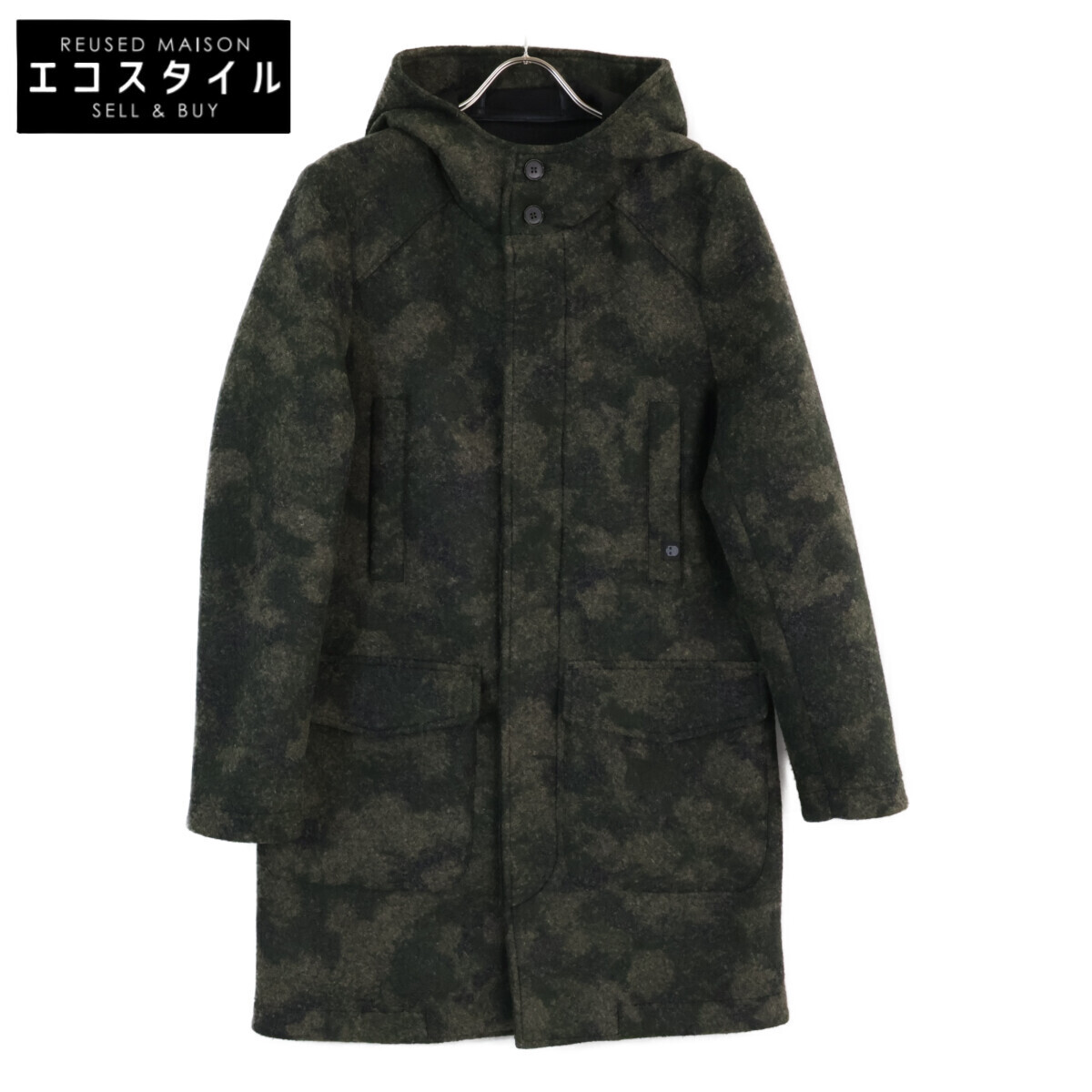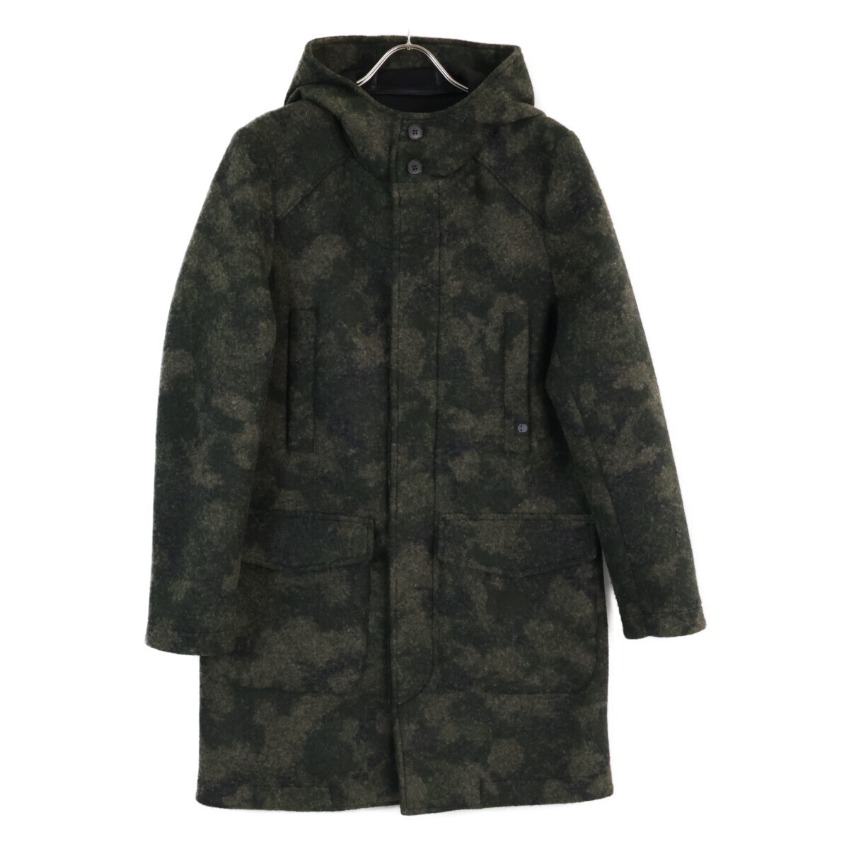 商品名 ハイドロゲン Cuore di Piano カーキ ウール混 スモッグカモ フーデッドコートコート