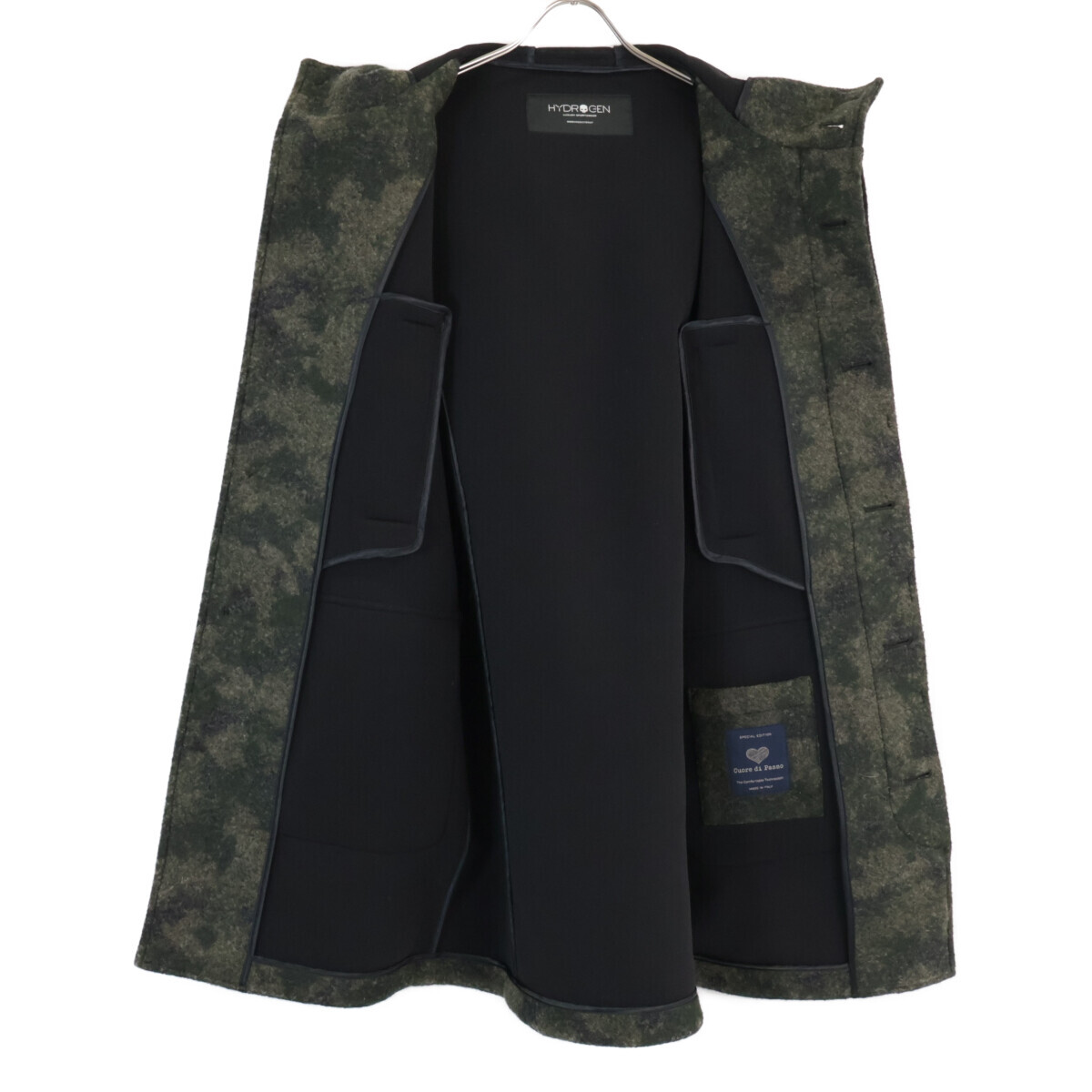 HYDROGEN ハイドロゲン Cuore di Piano カーキ ウール混 スモッグカモ フーデッドコート カーキ 46 コート ポリエステル メンズ 中古