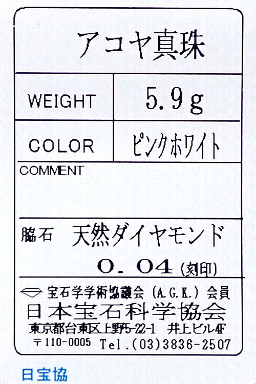 アコヤ真珠色:ピンクを帯びたクリームホワイトの色合い