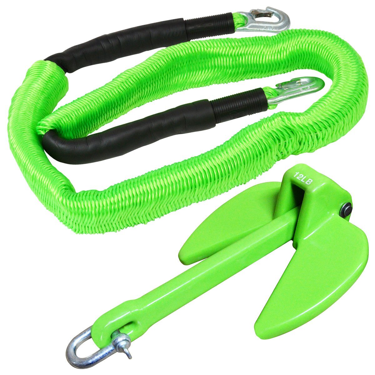 『伸縮ロープ/アンカーセット』爪型 アンカー 10LBS 4.5kg 緑 グリーン 6M フロート のびのび アンカー ロープ 緑