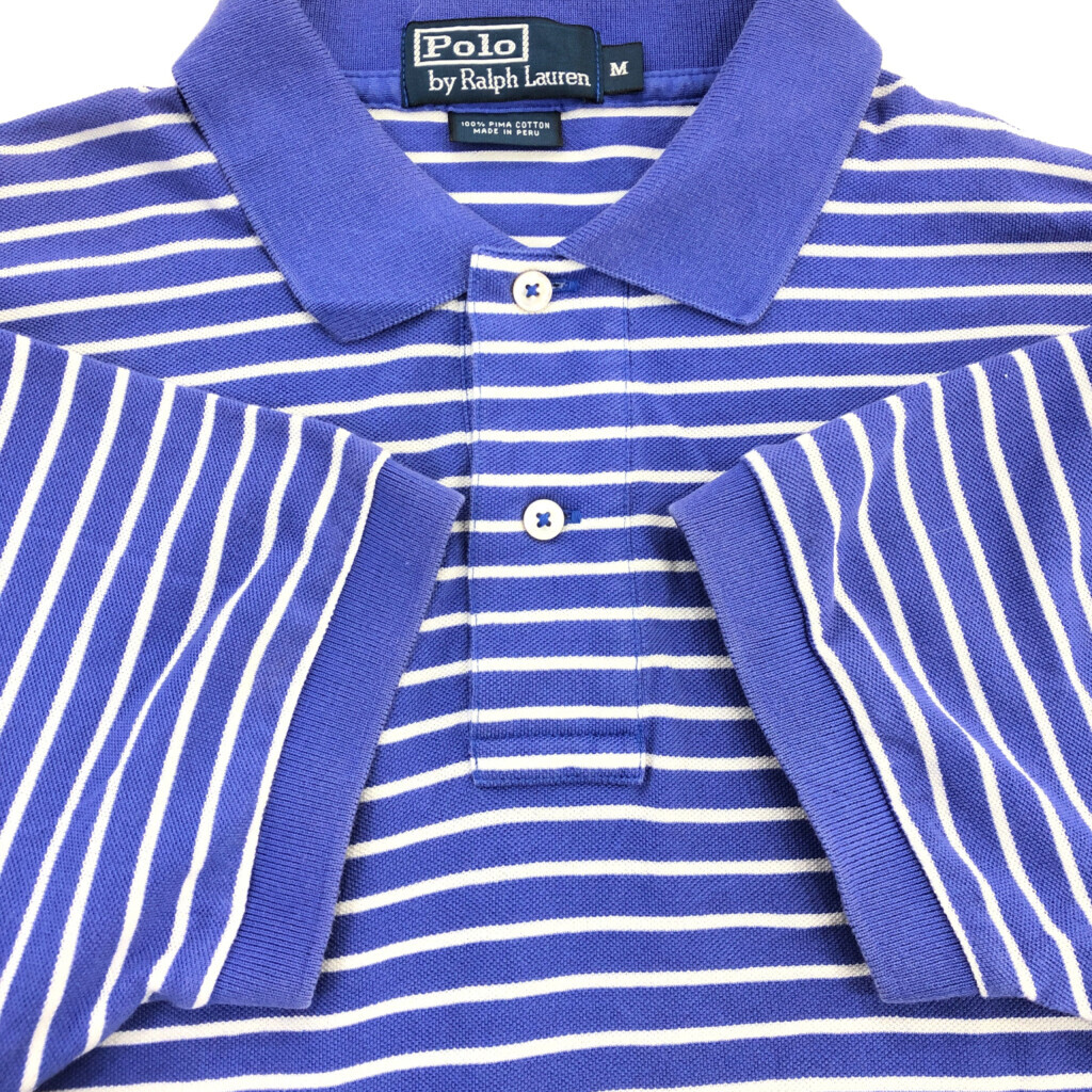 | 【商品管理番号】 T4837 【ブランド】 Polo by Ralph Lauren/ポロ ラルフローレン 【サイズ】 M 【実寸サイズ】 肩幅:約47cm 着丈:約74cm 身幅:約54cm 袖丈:約22cm 【主な素材】 表地 : コットン 【色】 ブルー 【仕様】 ボーダー 【状態】 汚れ:襟、袖先、腰 | |||
